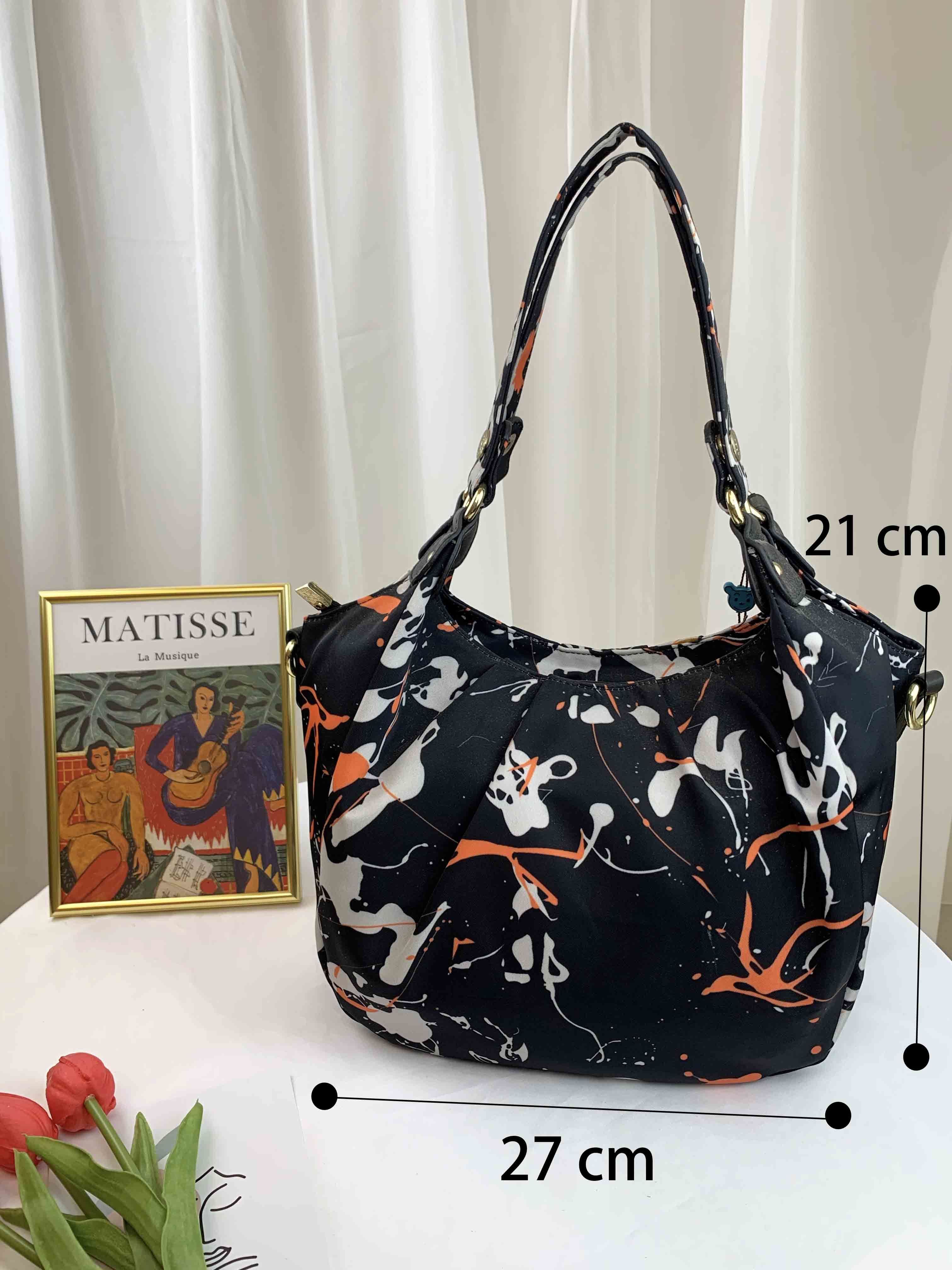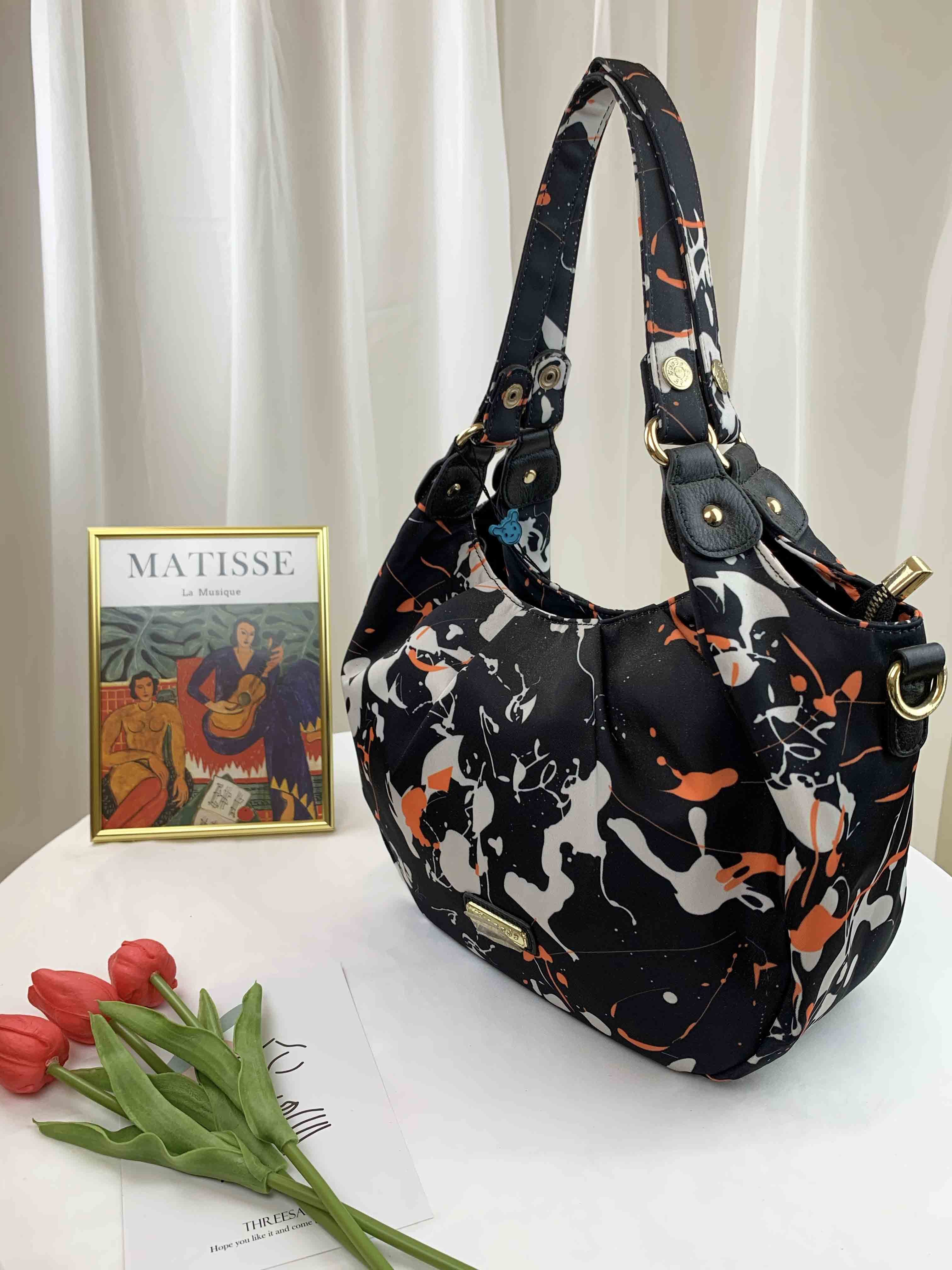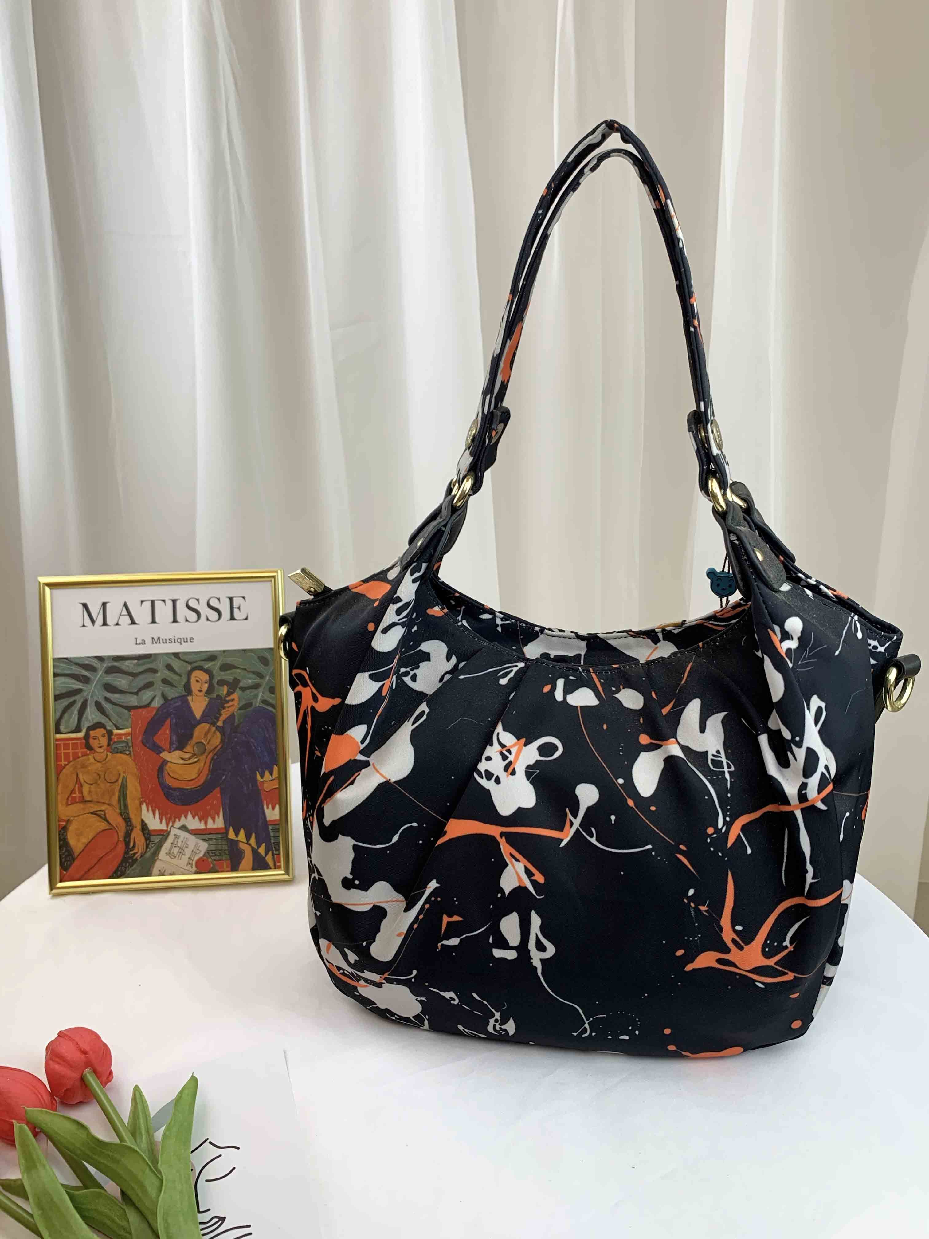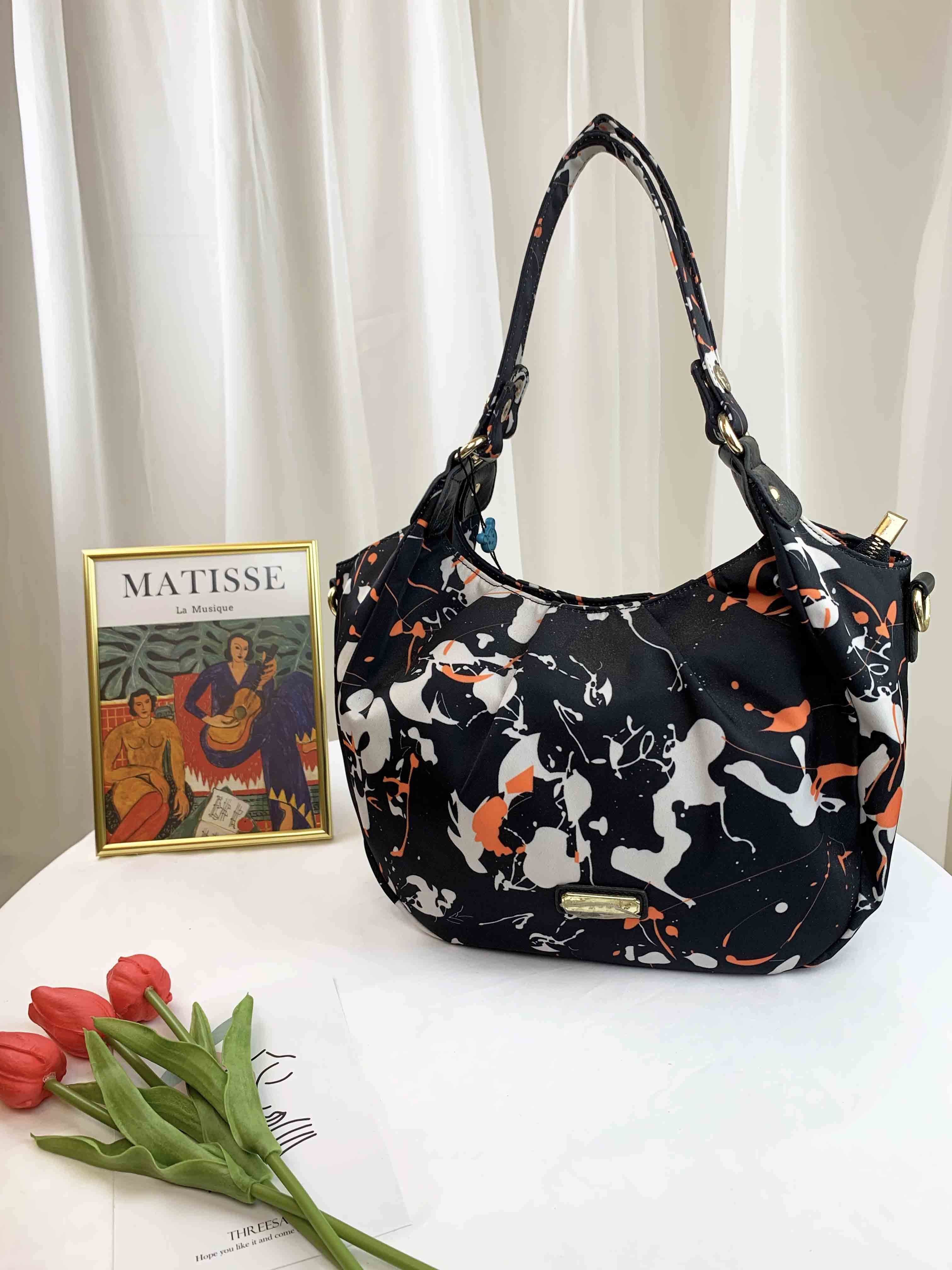 GOODS 復古潑漆黑尼龍肩背包 / 手提包 #2641