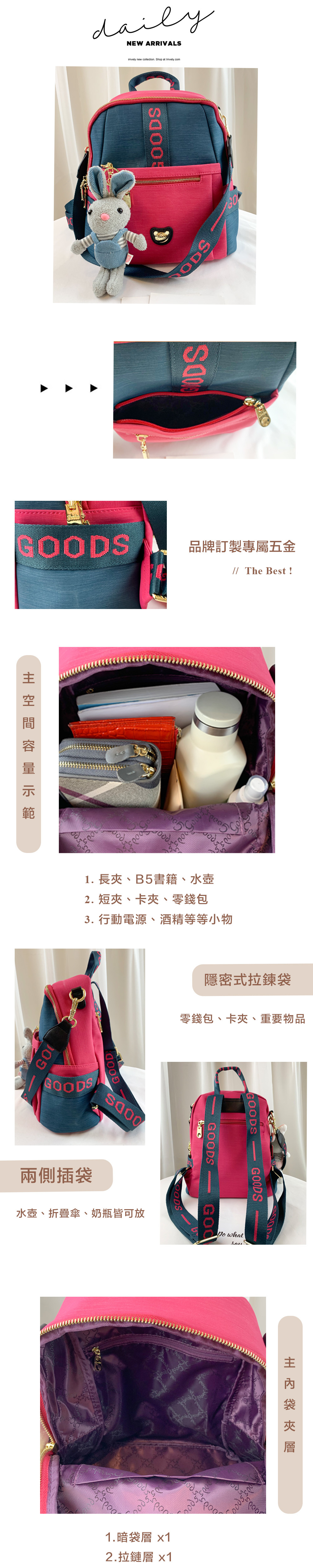 GOODS 紫花拼色防潑水後背包 / 側背包 附零錢包 #2649