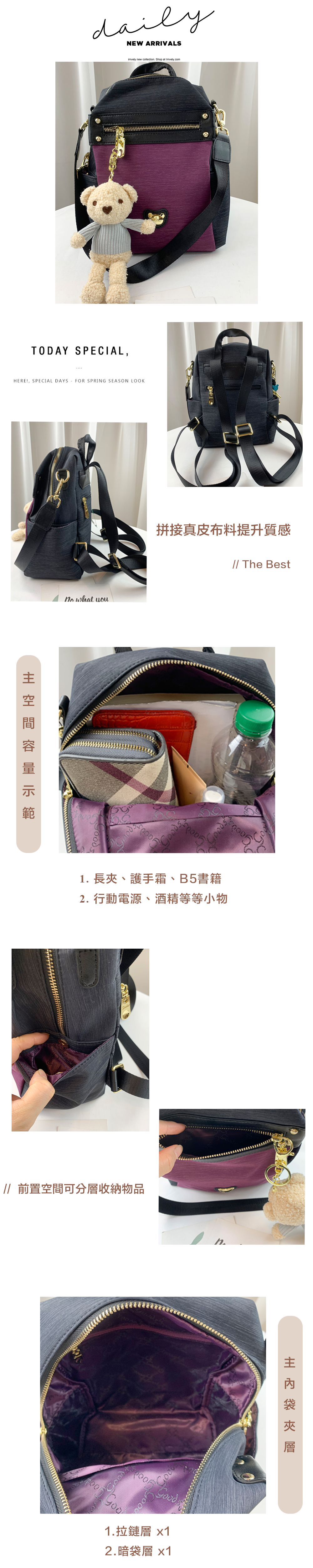 GOODS 黑紫拼色 防潑水後背包 / 側背包 附小熊吊飾 #2653