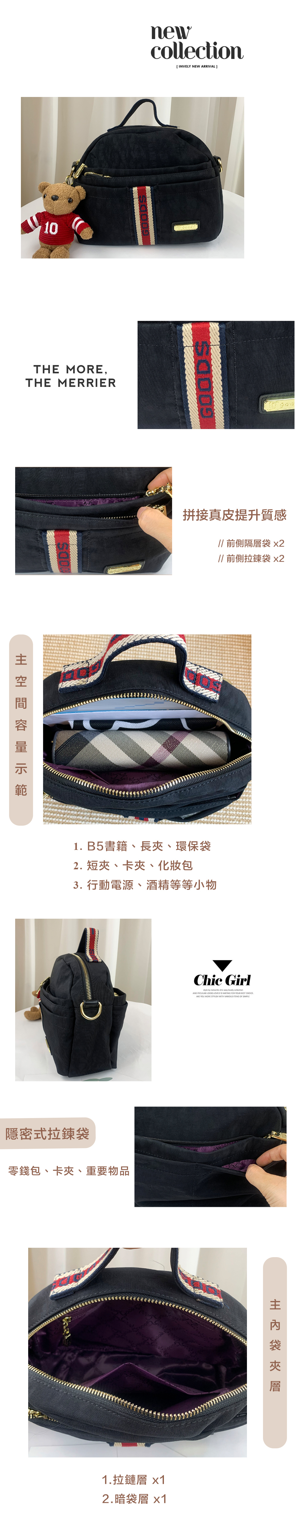 ✒︎水洗布料不易髒,拼接真皮材質,整體質感提升。