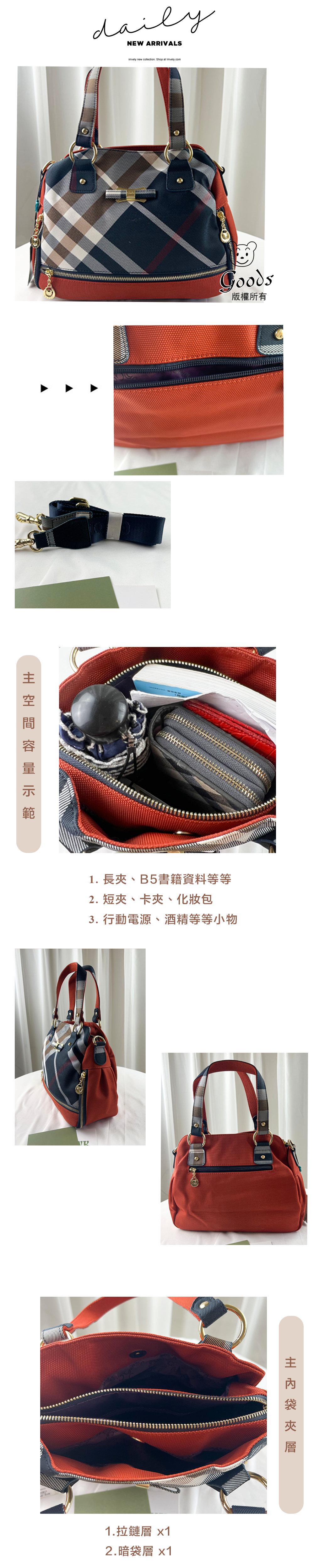 GOODS 橘格紋拼色手提包 / 側背包 #2665