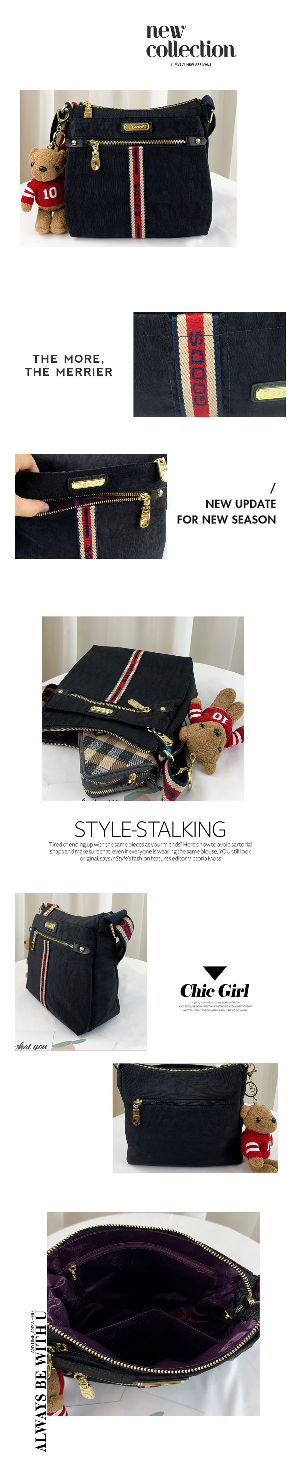 GOODS 織帶黑 多層收納方形側背包 附小熊吊飾 #2676