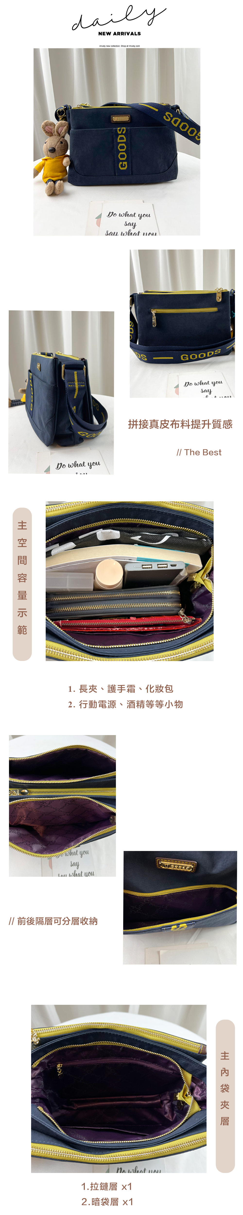 GOODS 織帶黃藍 丹寧防潑水側背包 附小熊吊飾 #2678