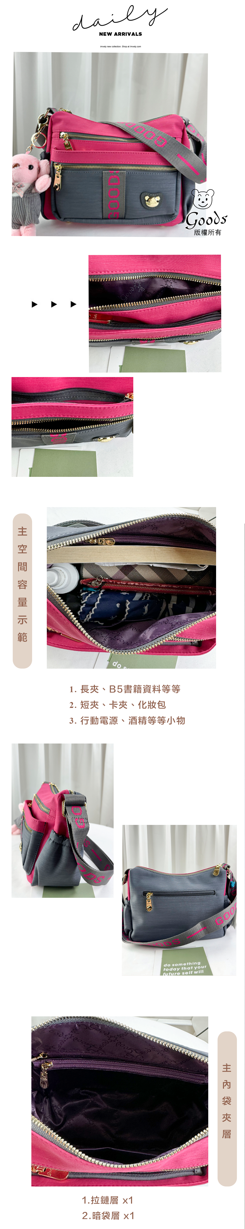 GOODS 灰桃拼色防潑水側背包 附兔兔吊飾 #2689