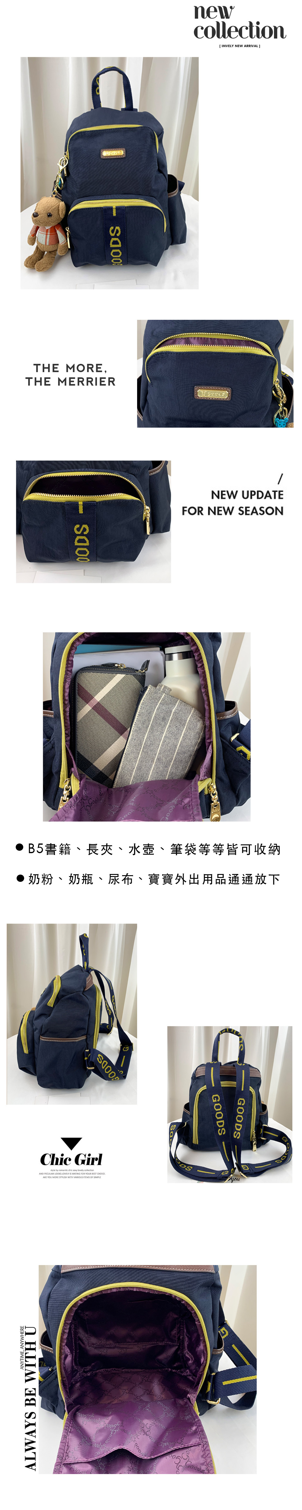 GOODS 織帶藍 拼接黃藍防盜後背包 附小熊吊飾 #2708