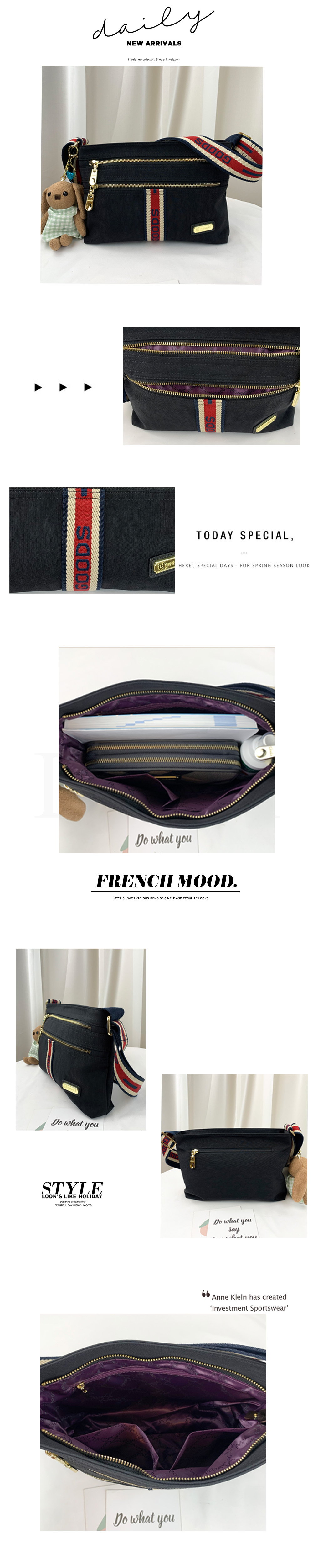 GOODS 織帶黑 水洗紋防潑水側背包 附小熊吊飾 #2712