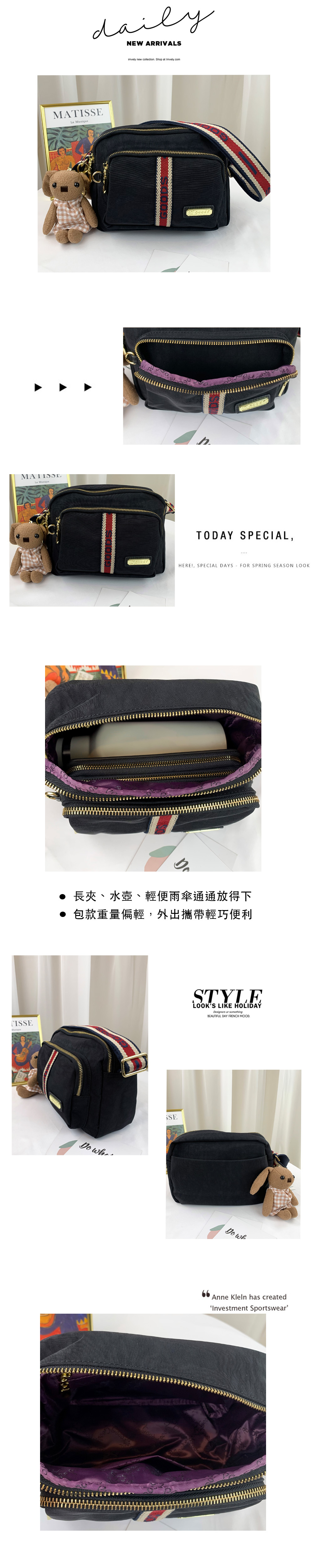 GOODS 織帶黑 多層收納側背相機包 附小熊吊飾 #2718