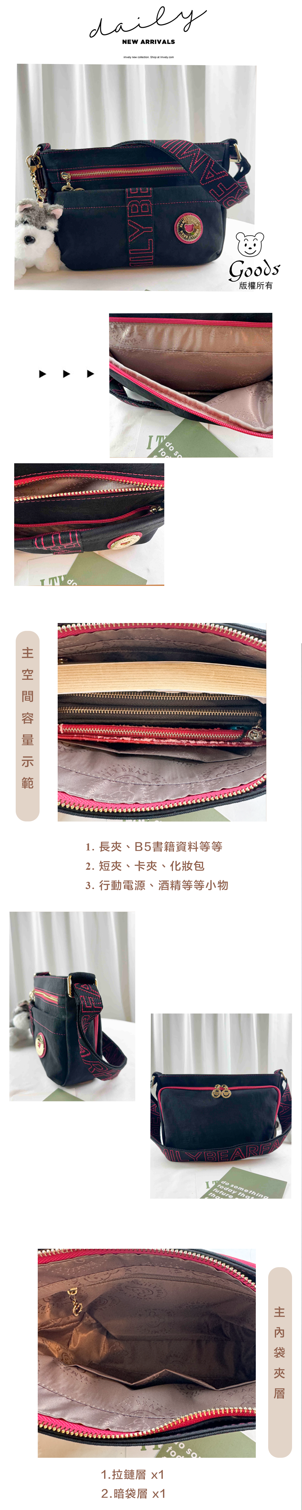 GOODS 黑桃織帶織帶防潑水側背包 附小熊吊飾 #2722
