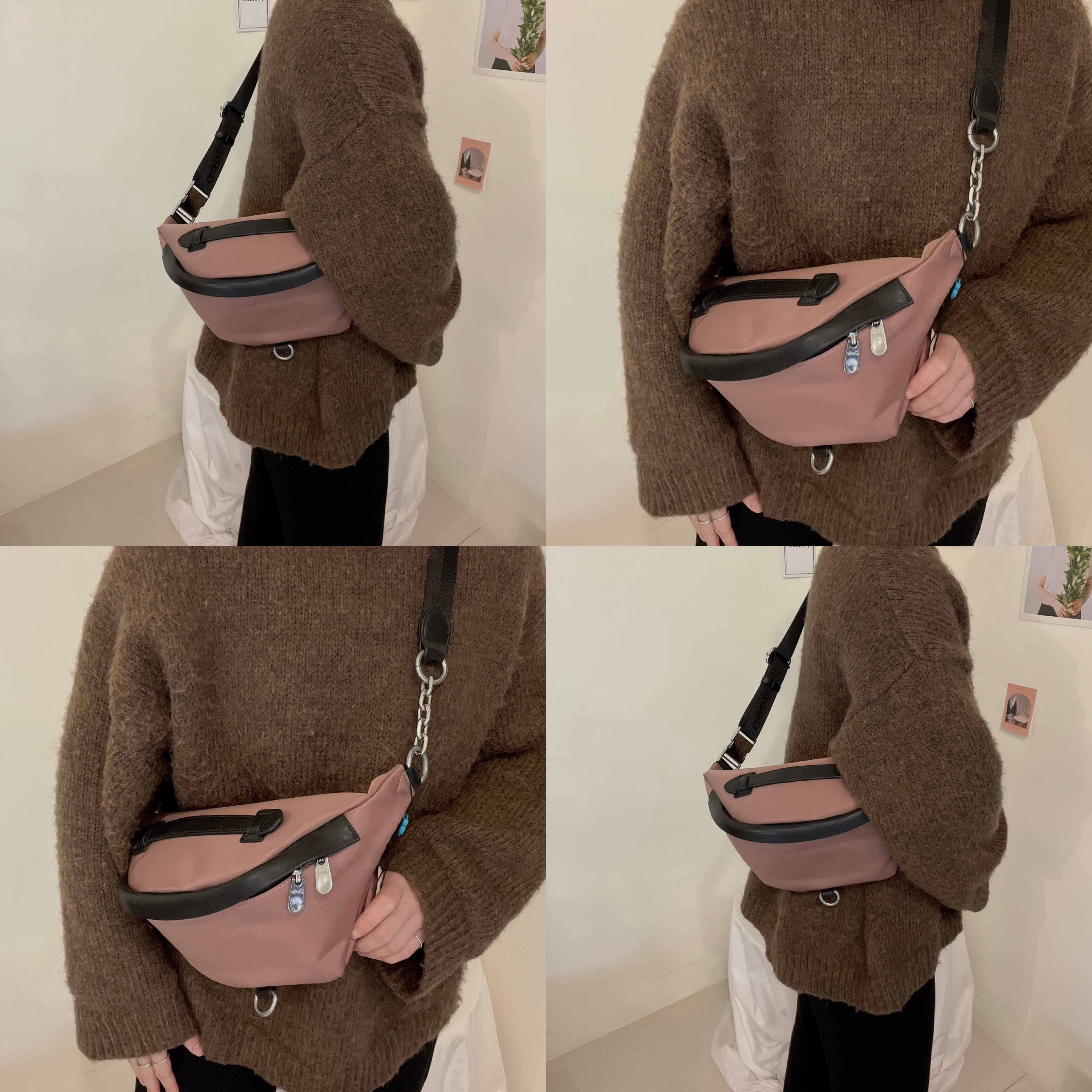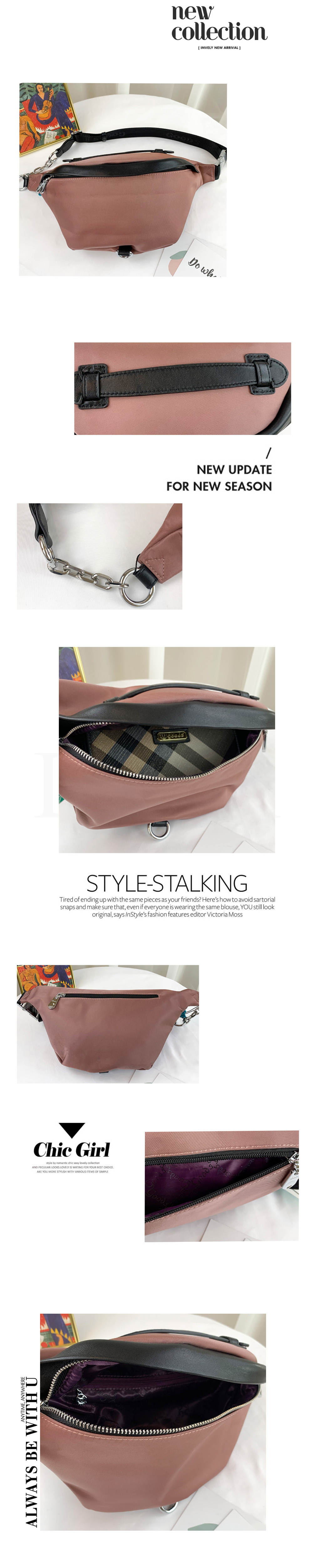 GOODS 淺粉色 尼龍拼接真皮鏈帶斜背腰包 #2724