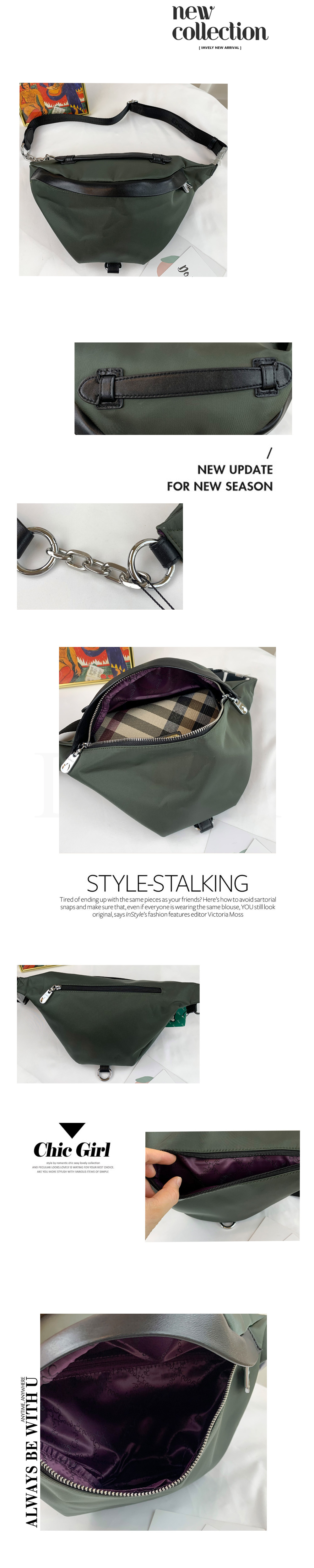 GOODS 墨綠色 尼龍拼接真皮鏈帶斜背腰包 #2724