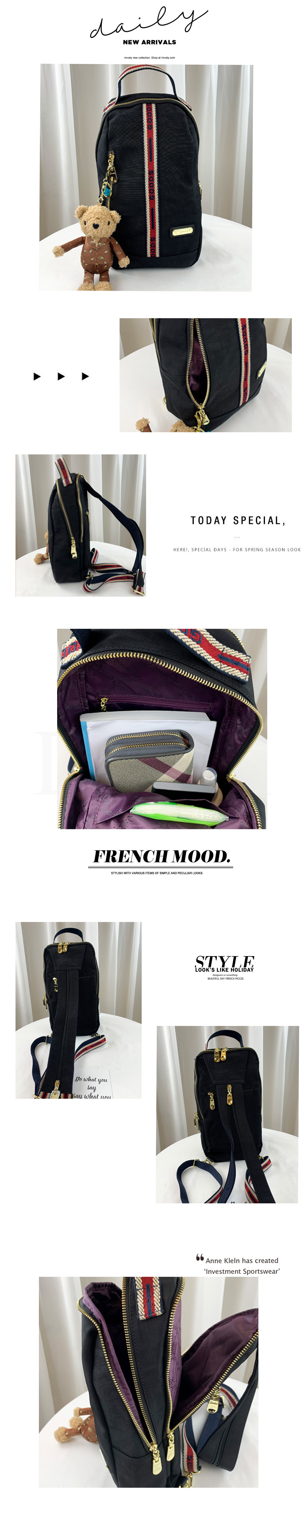 GOODS 織帶黑 防潑水兩用後背包 / 斜背胸包 附小熊吊飾 #2731