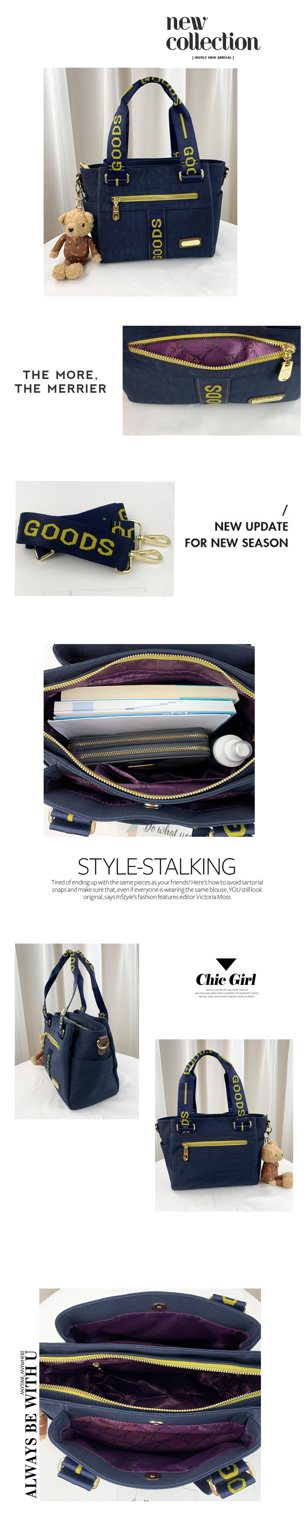 GOODS 織帶黃藍 丹寧防潑水手提包 / 側背包 附小熊吊飾 #2733