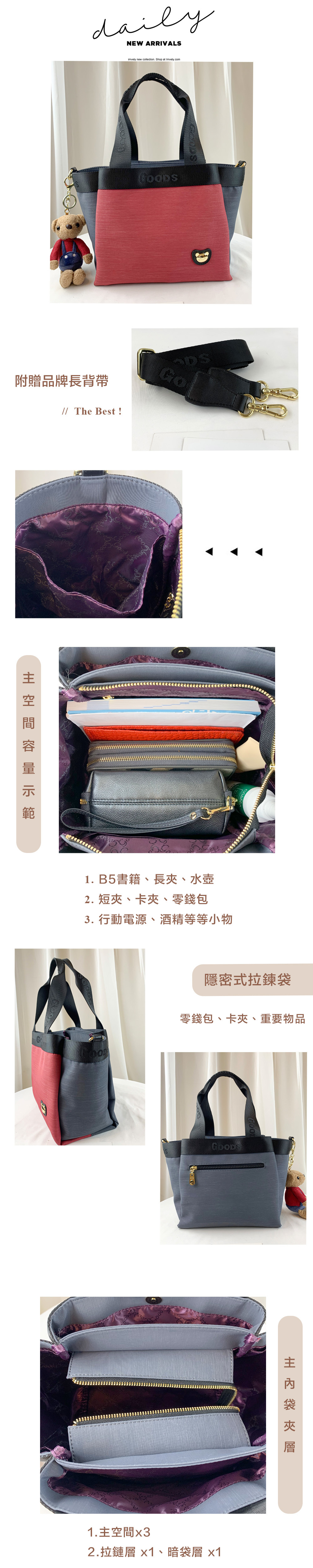 GOODS 紅灰拼色 防潑水手提包 / 側背包 #2734