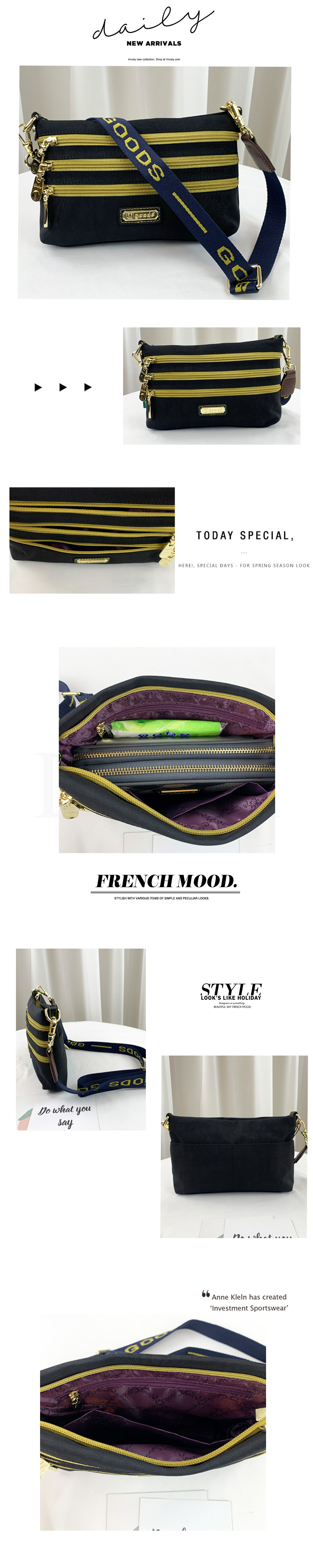 GOODS 織帶黃藍 水洗黑防潑水側背包 #2737