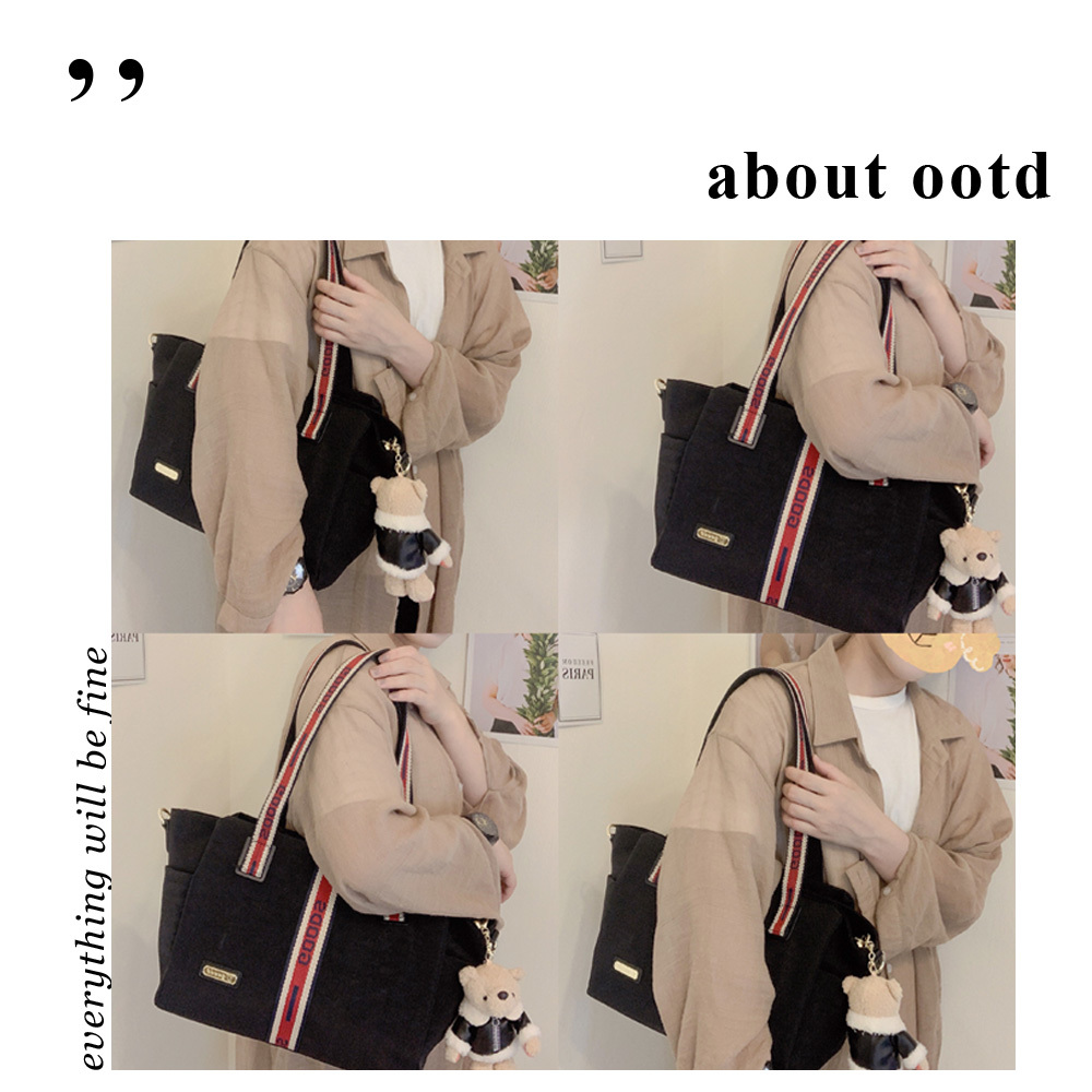 GOODS 織帶黑 水洗紋防潑水手提包 / 側背包 附小熊吊飾 #2739