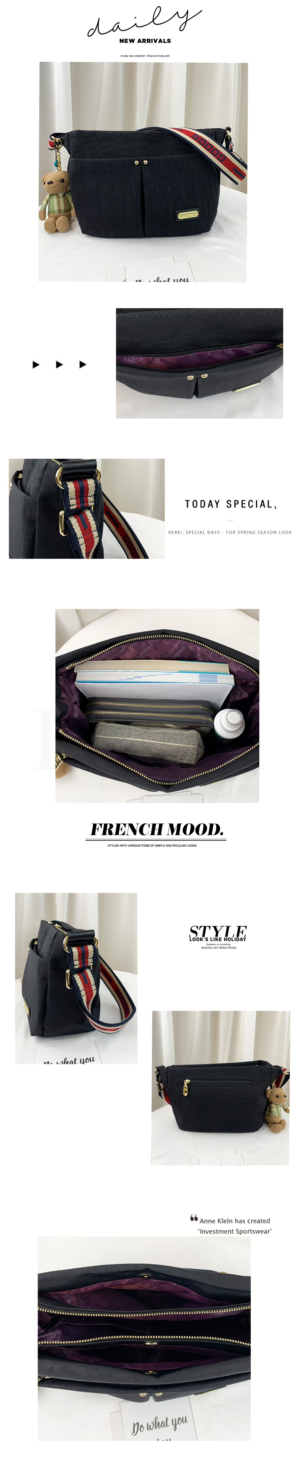 GOODS 織帶黑 水洗紋防潑水側背包 附小熊吊飾 #2740