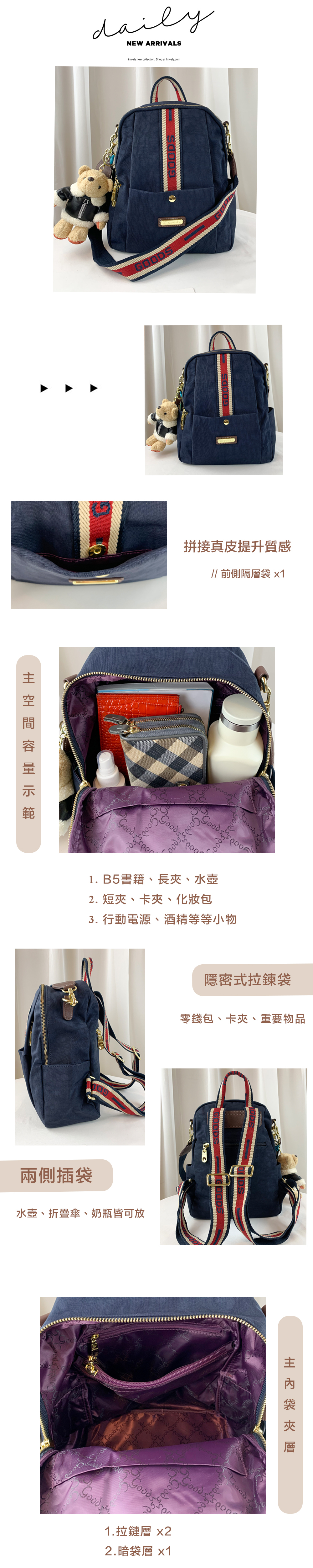 GOODS 織帶丹寧藍 防潑水後背包 / 側背包 附小熊吊飾 #2743