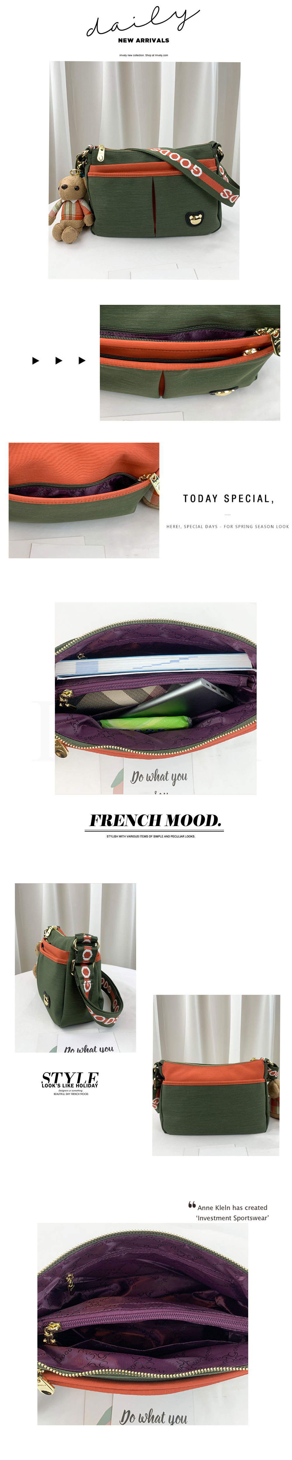 GOODS 橘綠拼色 防潑水側背包 附小熊吊飾 #2746