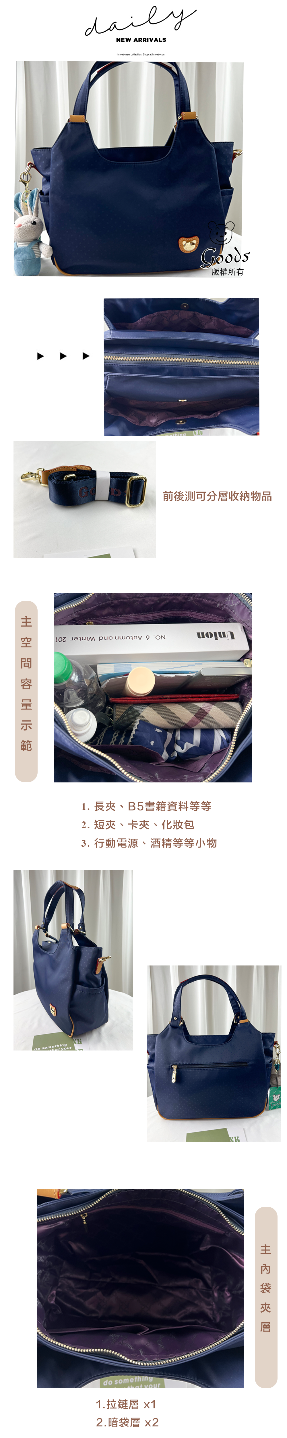 ✒︎採用防潑水布料,不怕下雨淋濕包包內裡重要物品。