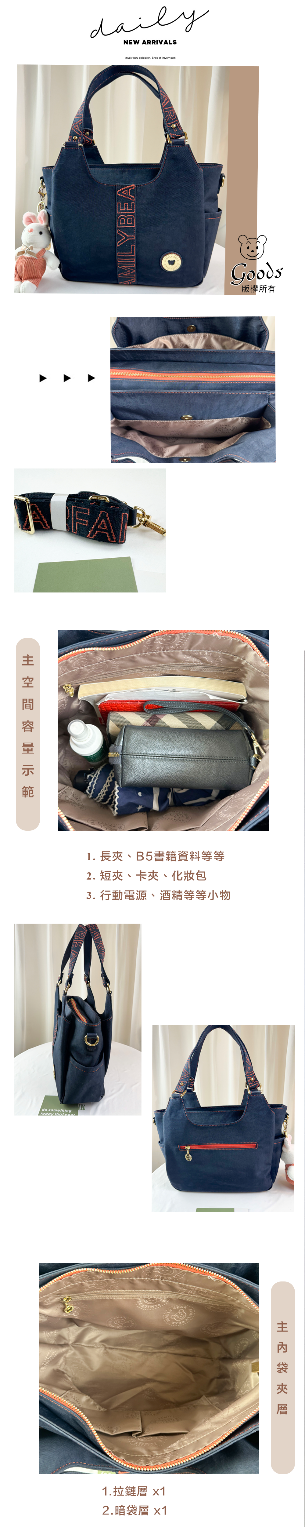 ✒︎採用防潑水布料,不怕下雨淋濕包包內裡重要物品。