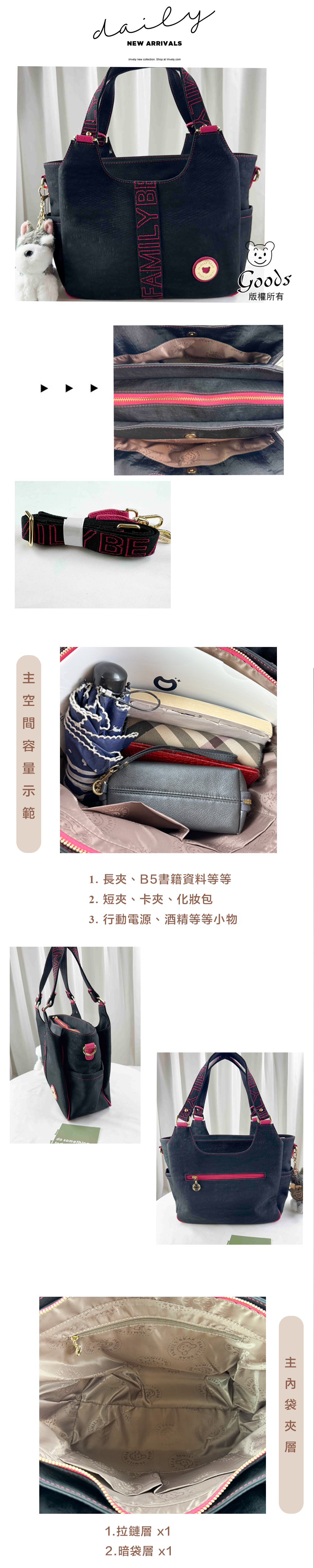 ✒︎採用防潑水布料,不怕下雨淋濕包包內裡重要物品。