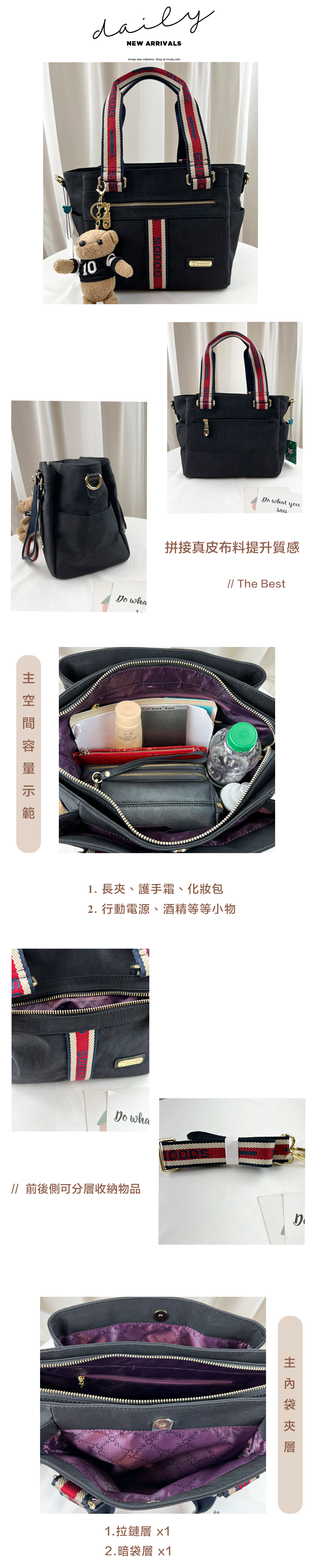 ✒︎水洗布料不易髒,拼接真皮材質,整體質感提升。