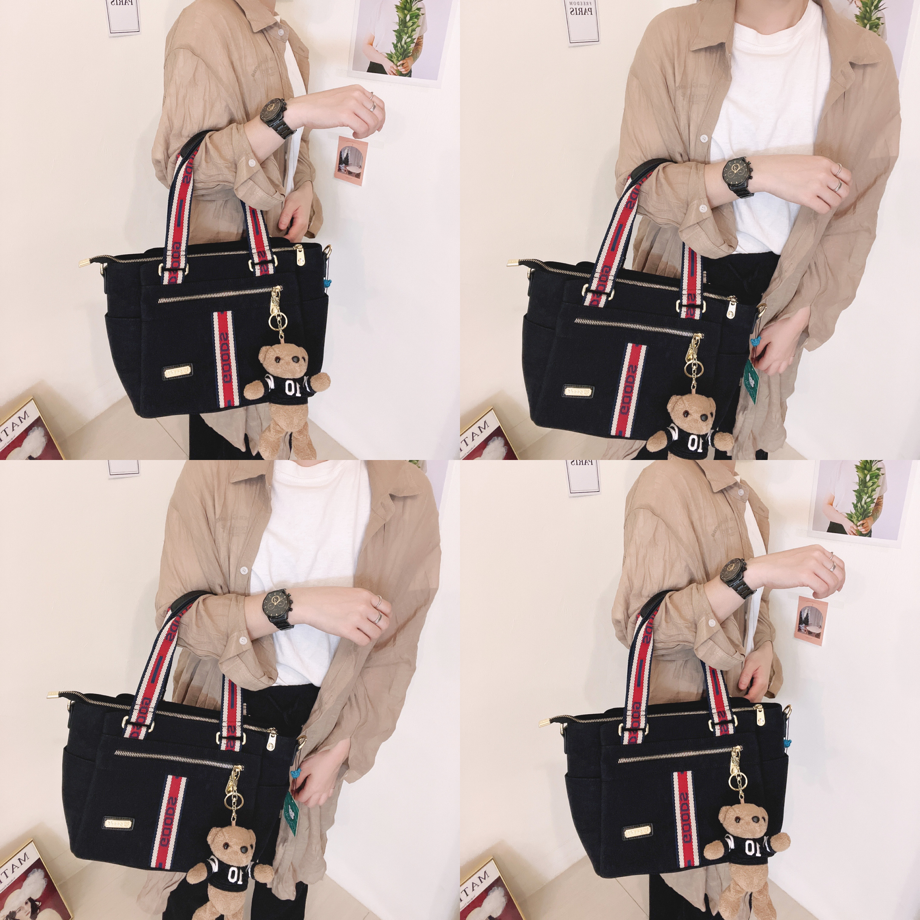 GOODS 織帶黑 防潑水手提包 / 側背包 附小熊吊飾 #2776