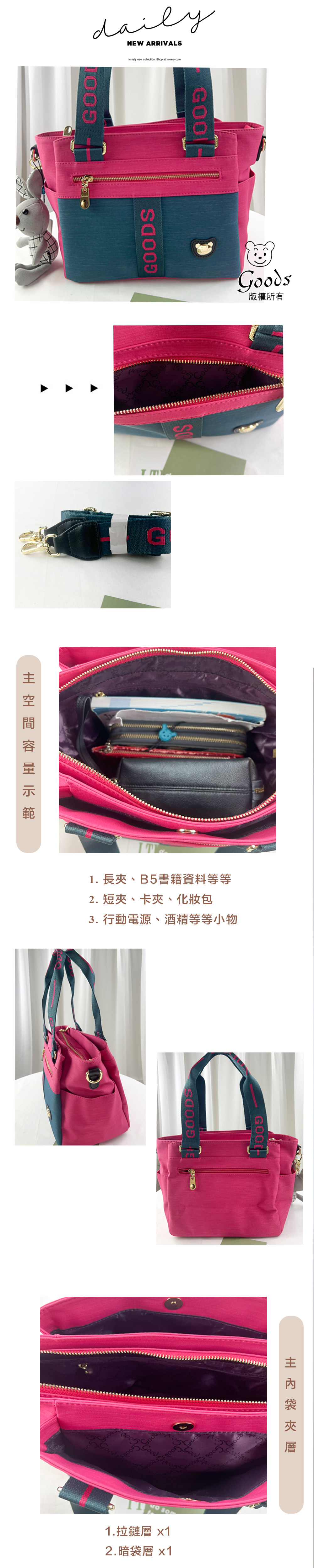 ✒︎採用防潑水布料,不怕下雨淋濕包包內裡重要物品。