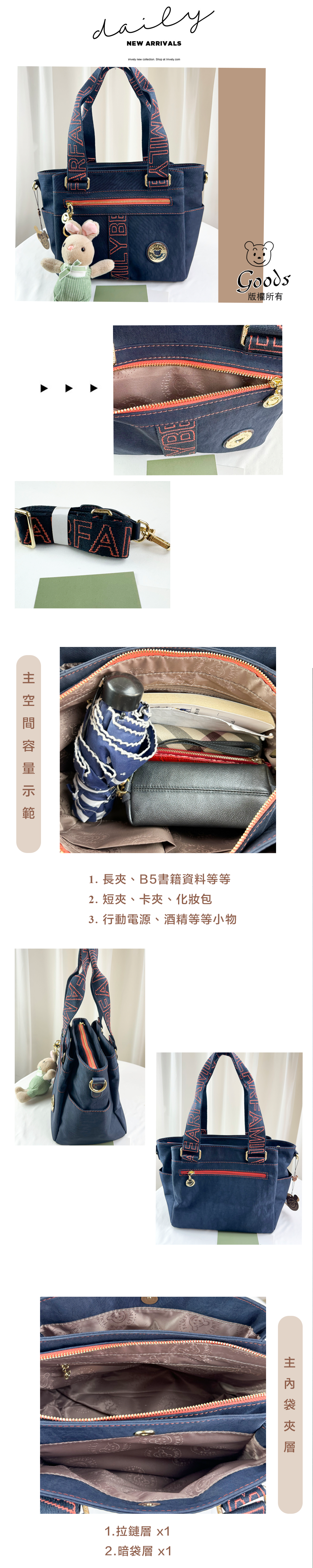 ✒︎採用防潑水布料,不怕下雨淋濕包包內裡重要物品。