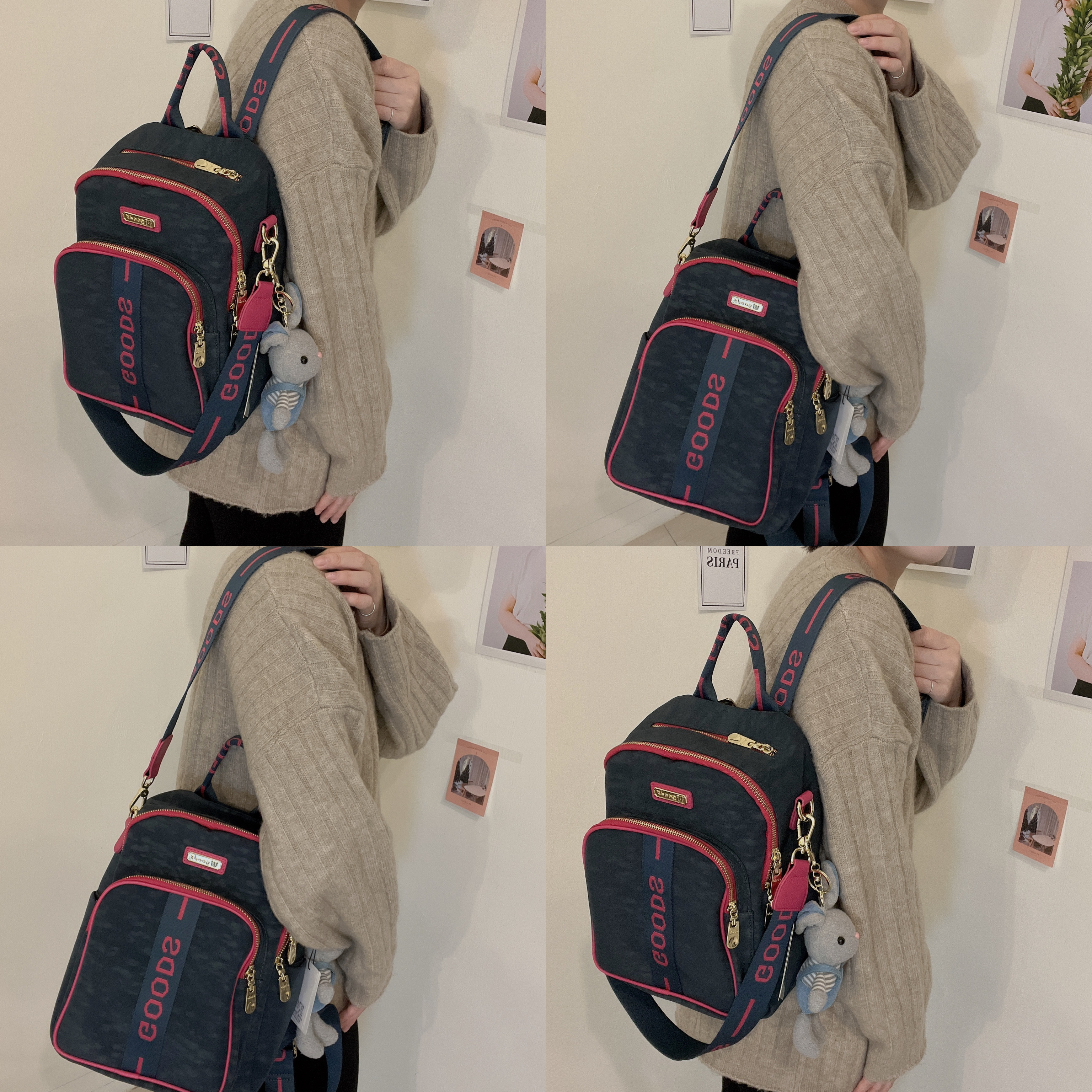 GOODS 織帶綠桃 運動風防潑水後背包 / 側背包 附小熊吊飾 #2795