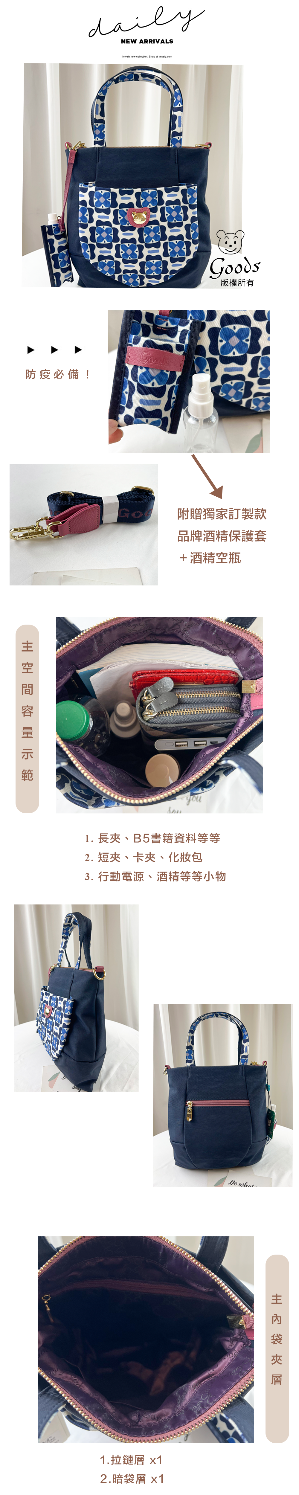 GOODS 水洗藍花朵防潑水手提包 / 側背包 附酒精保護套+酒精瓶 #2799