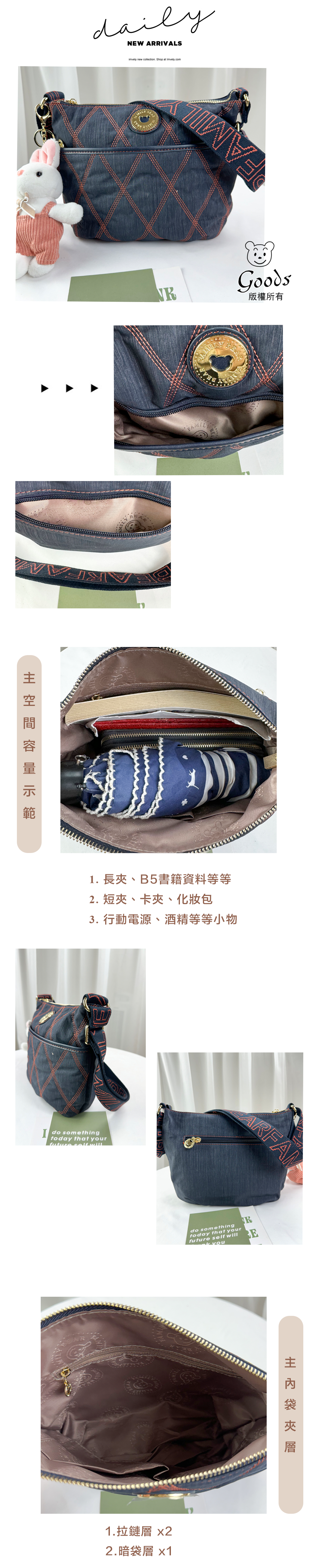 GOODS 藍橙菱格線尼龍防潑水側背包 附兔兔吊飾 #2802
