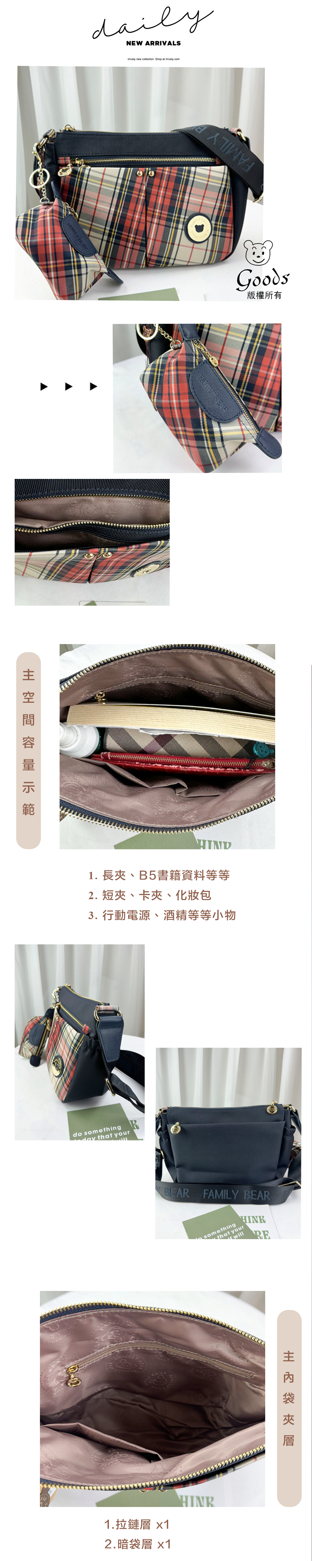 FamilyBear 橙格紋拼色防潑水側背包 附零錢包 #2806