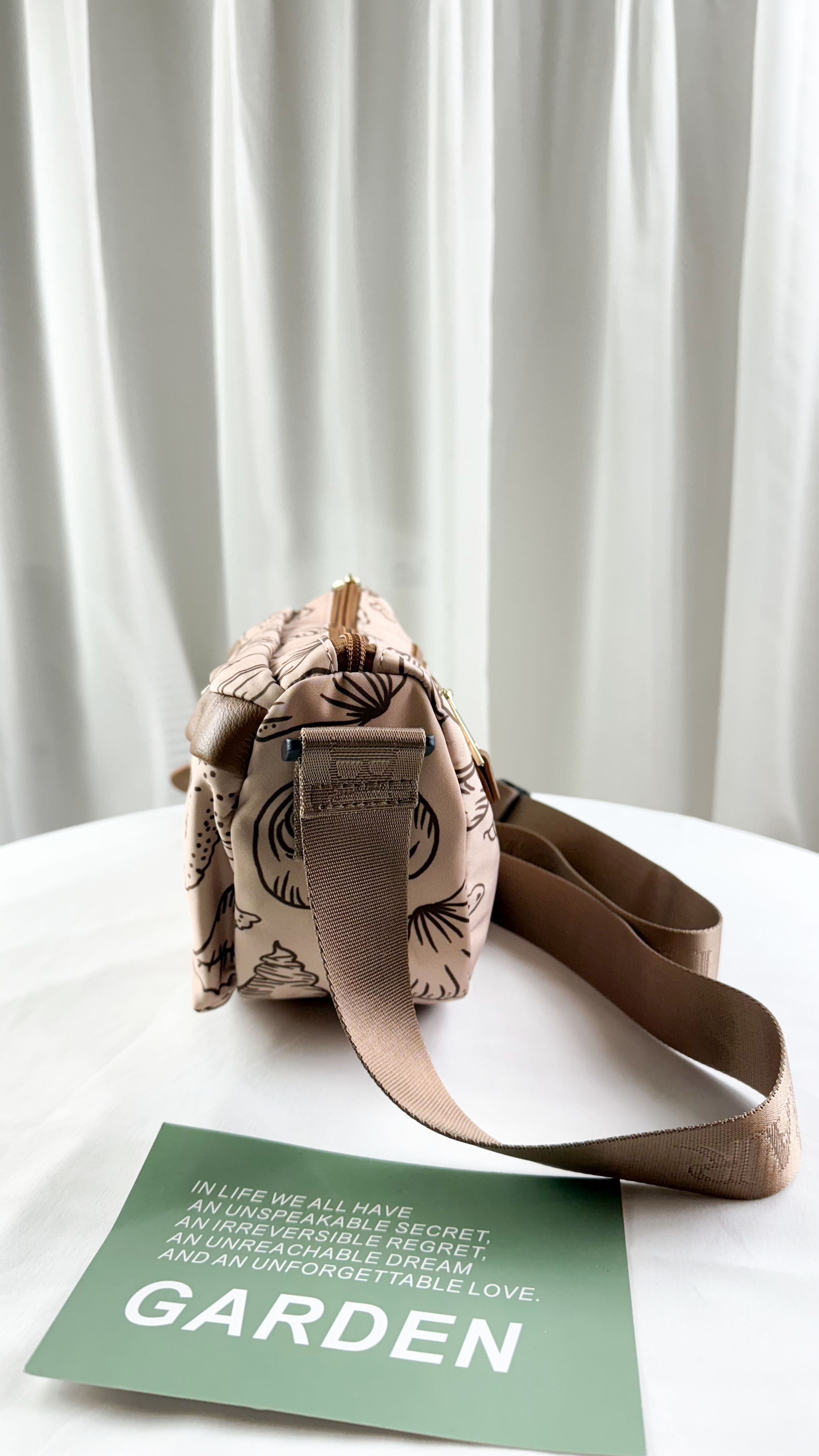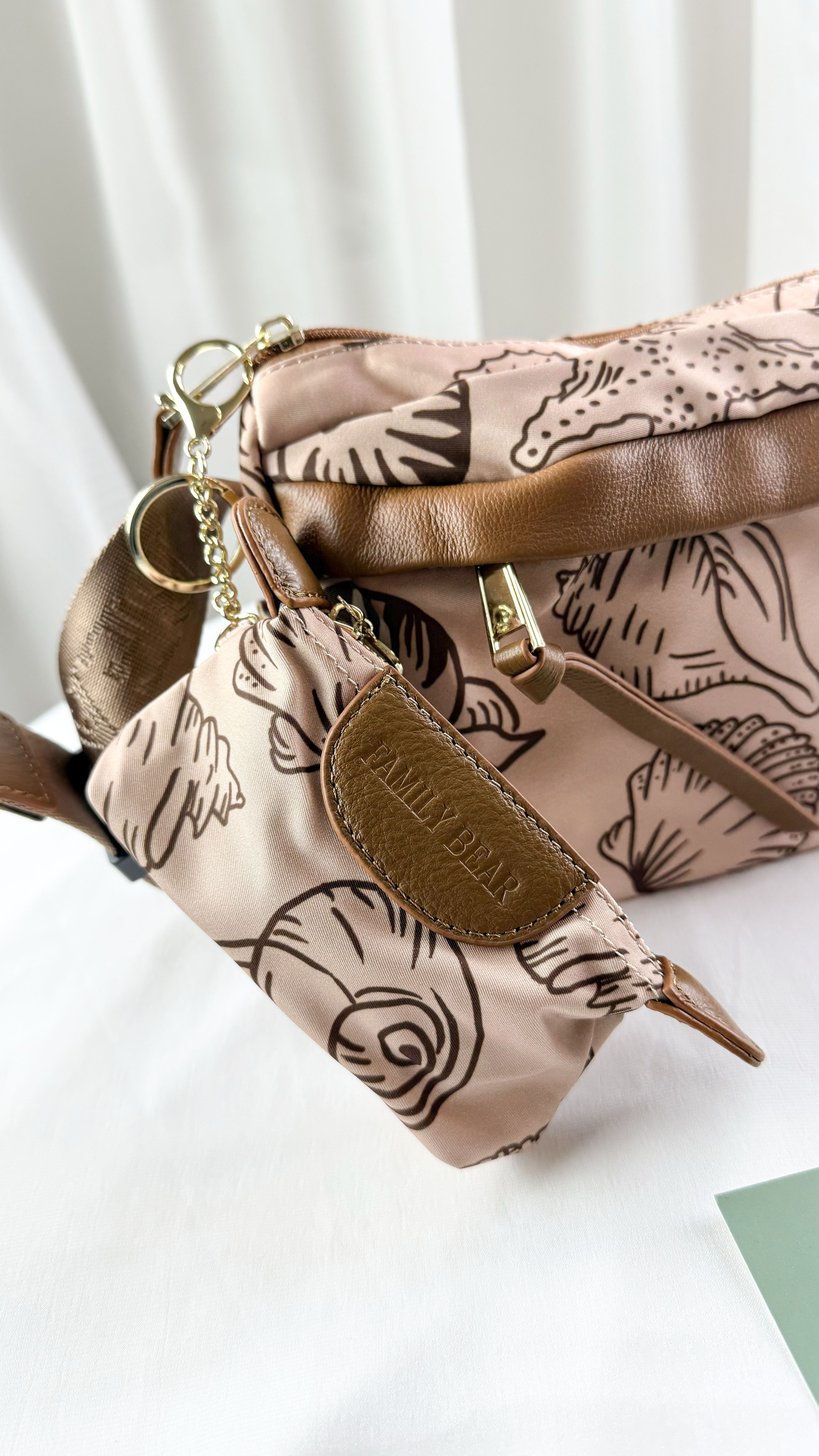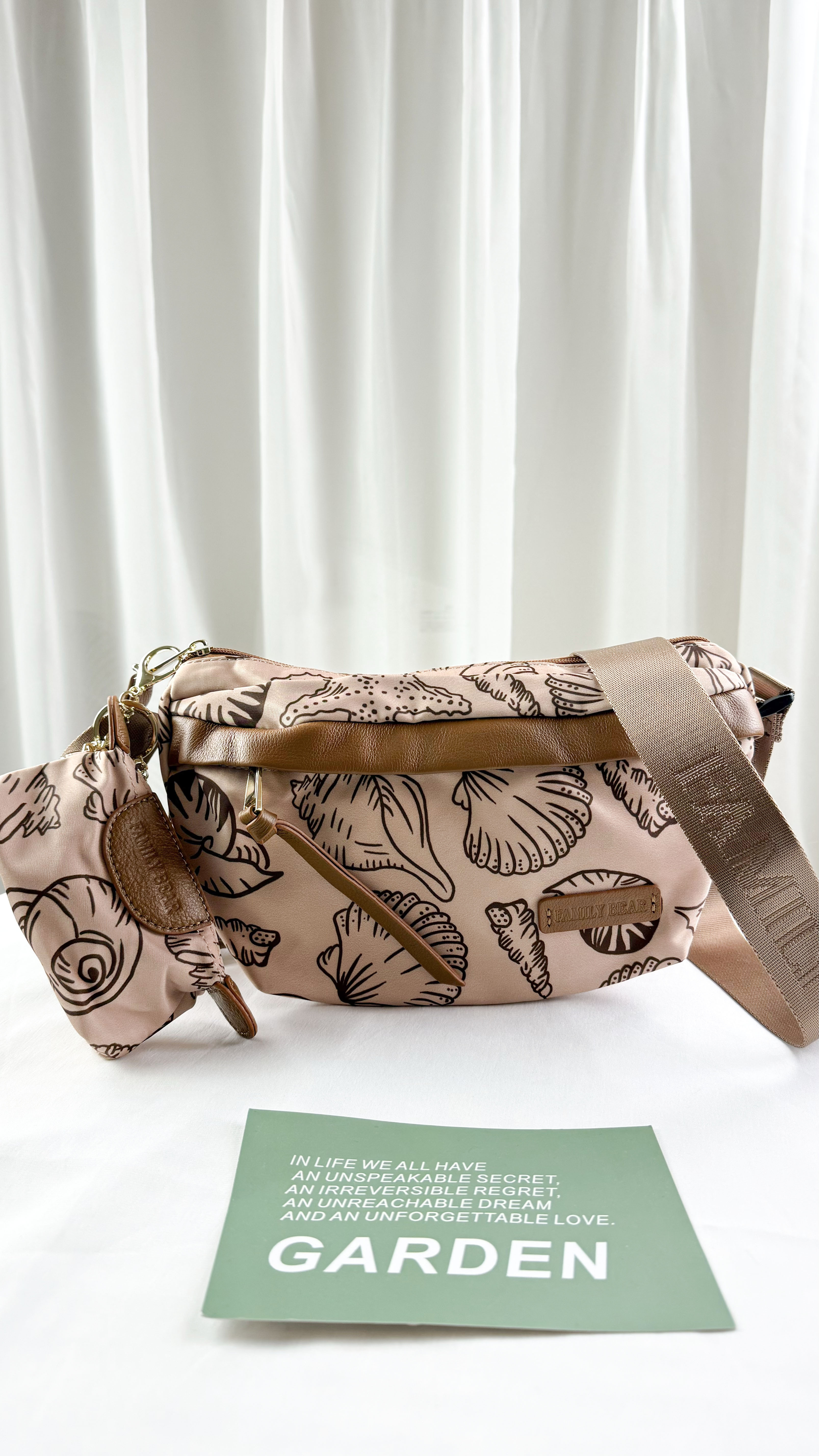FamilyBear 奶茶色拼接貝殼圖騰 防潑水側背包 附零錢包 #2909