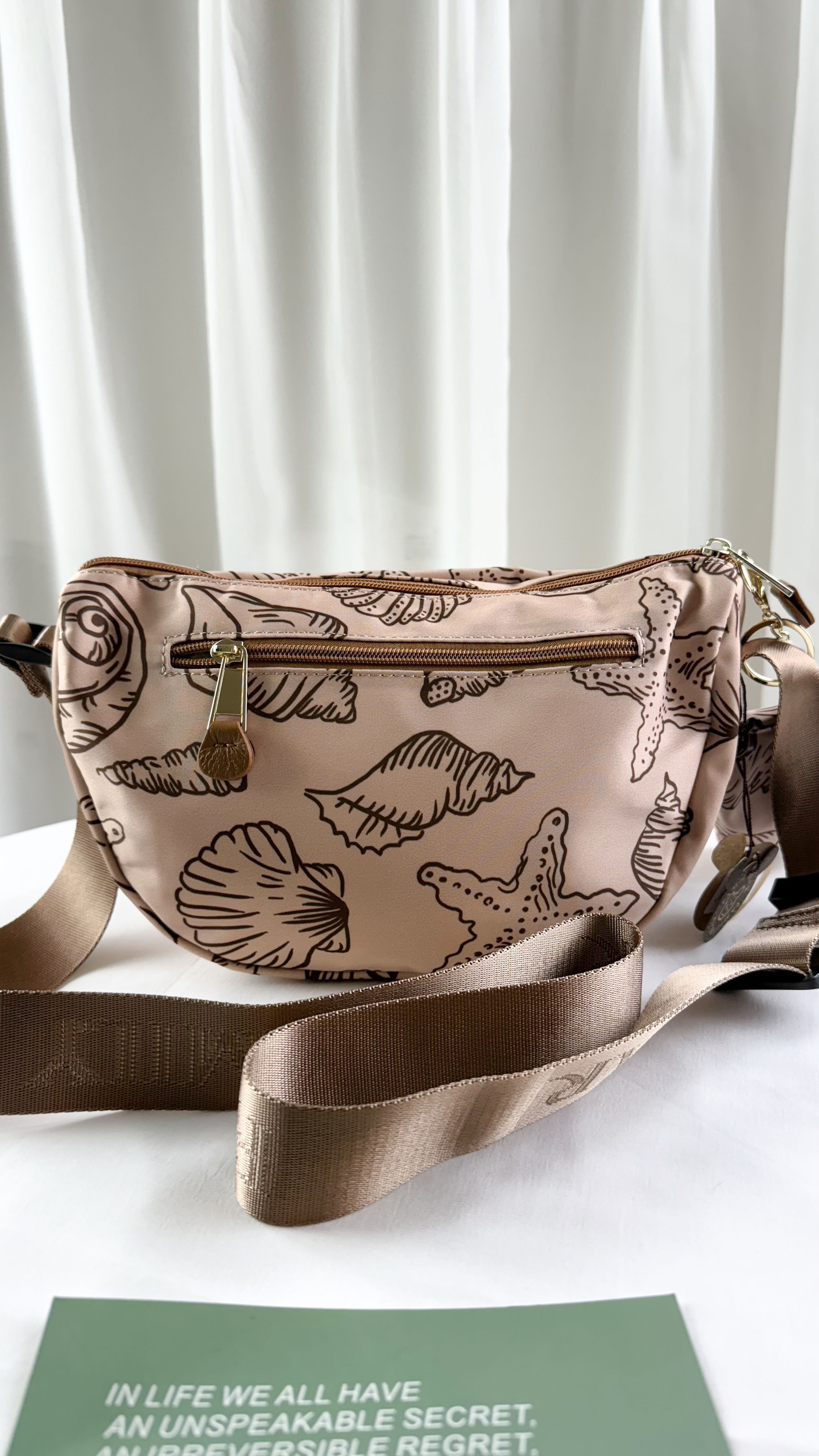 全部商品 / FamilyBear 奶茶色拼接貝殼圖騰 防潑水側背包 附零錢包 #2909