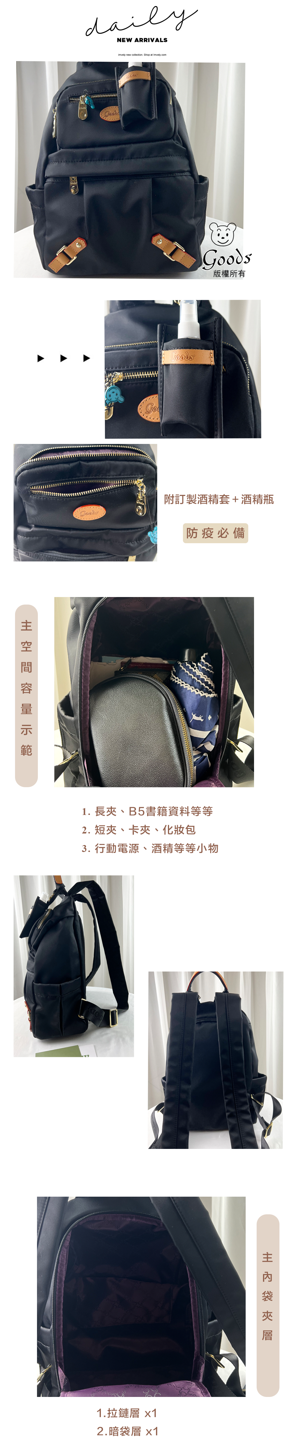 ✒︎採用防潑水布料,不怕下雨淋濕包包內裡重要物品。