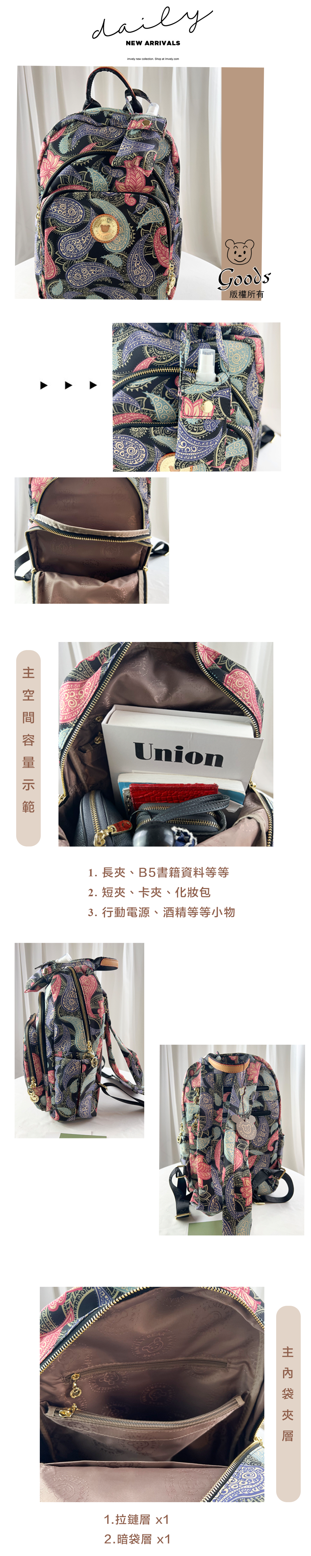 ✒︎採用防潑水布料,不怕下雨淋濕包包內裡重要物品。
