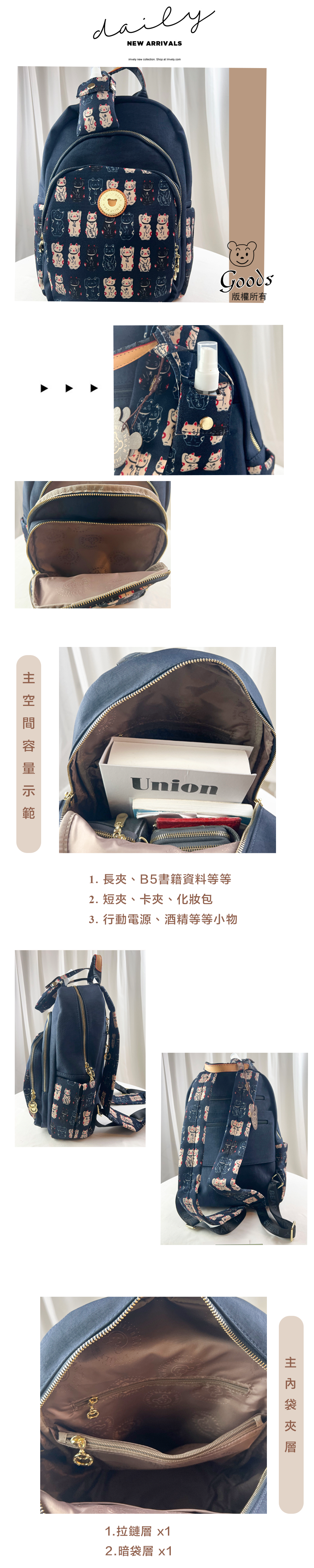 GOODS 招財貓拼色防潑水後背包 附酒精保護套+酒精瓶 #2847
