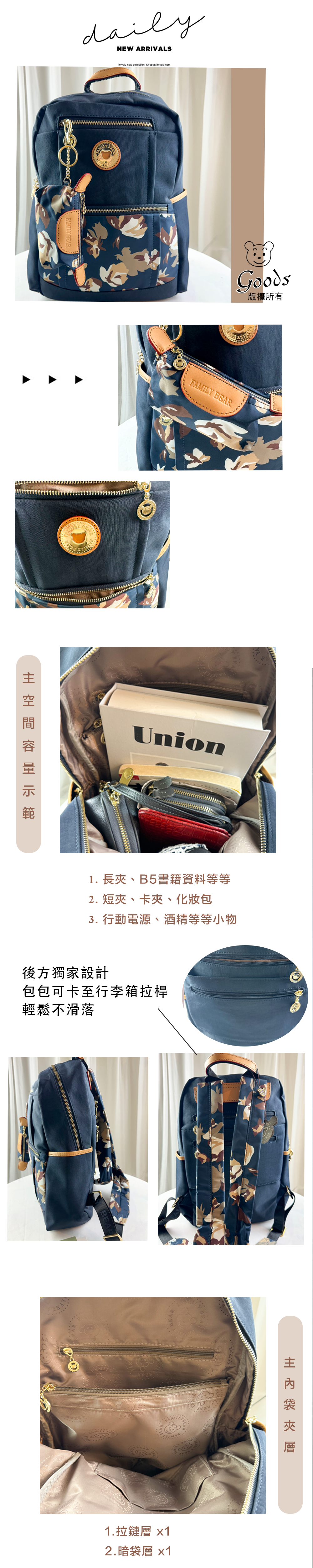 ●  規格:主空間x1  內拉鍊袋x2  暗格x1 前側拉鍊x2  後側拉鍊x1