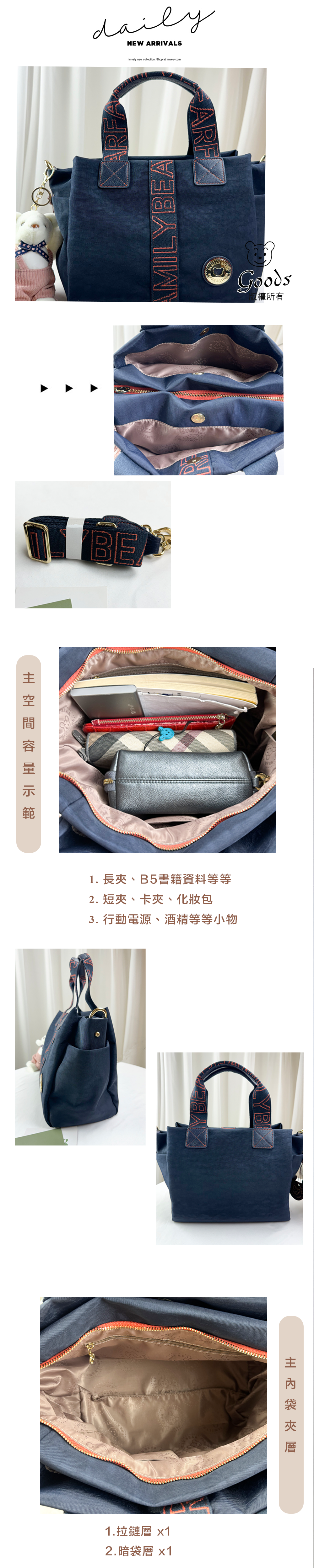 ●  規格:主空間x1  內拉鍊袋x1  暗格x1  後置拉鍊x1
