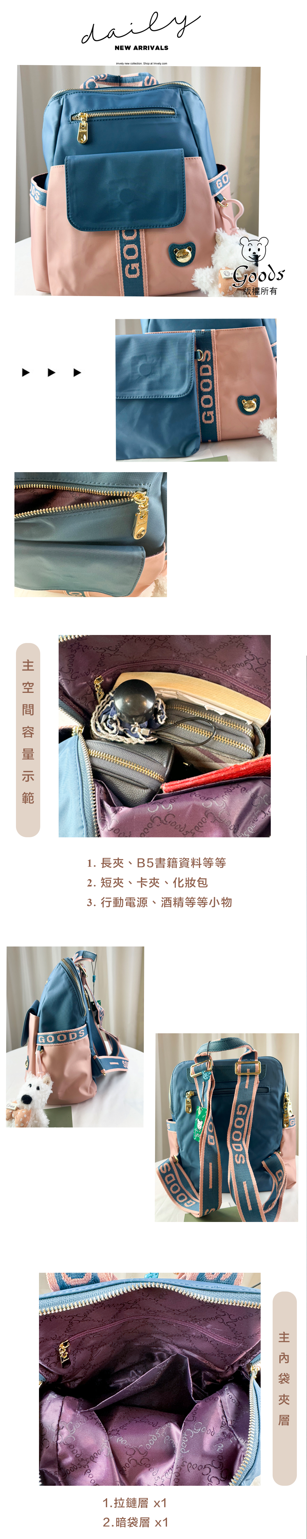 GOODS 綠粉拼色防潑水後背包 附兔兔吊飾 #2854