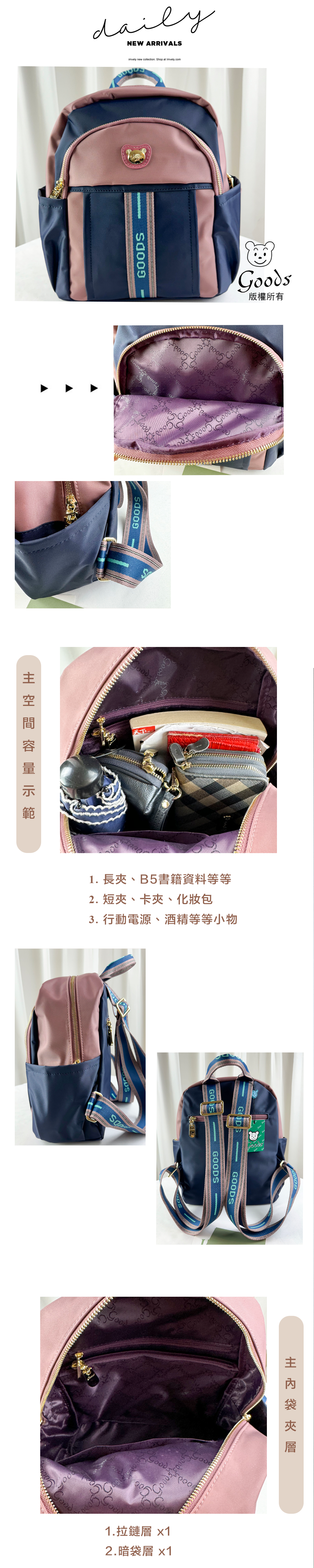 GOODS 織帶藍粉防潑水後背包 #2857