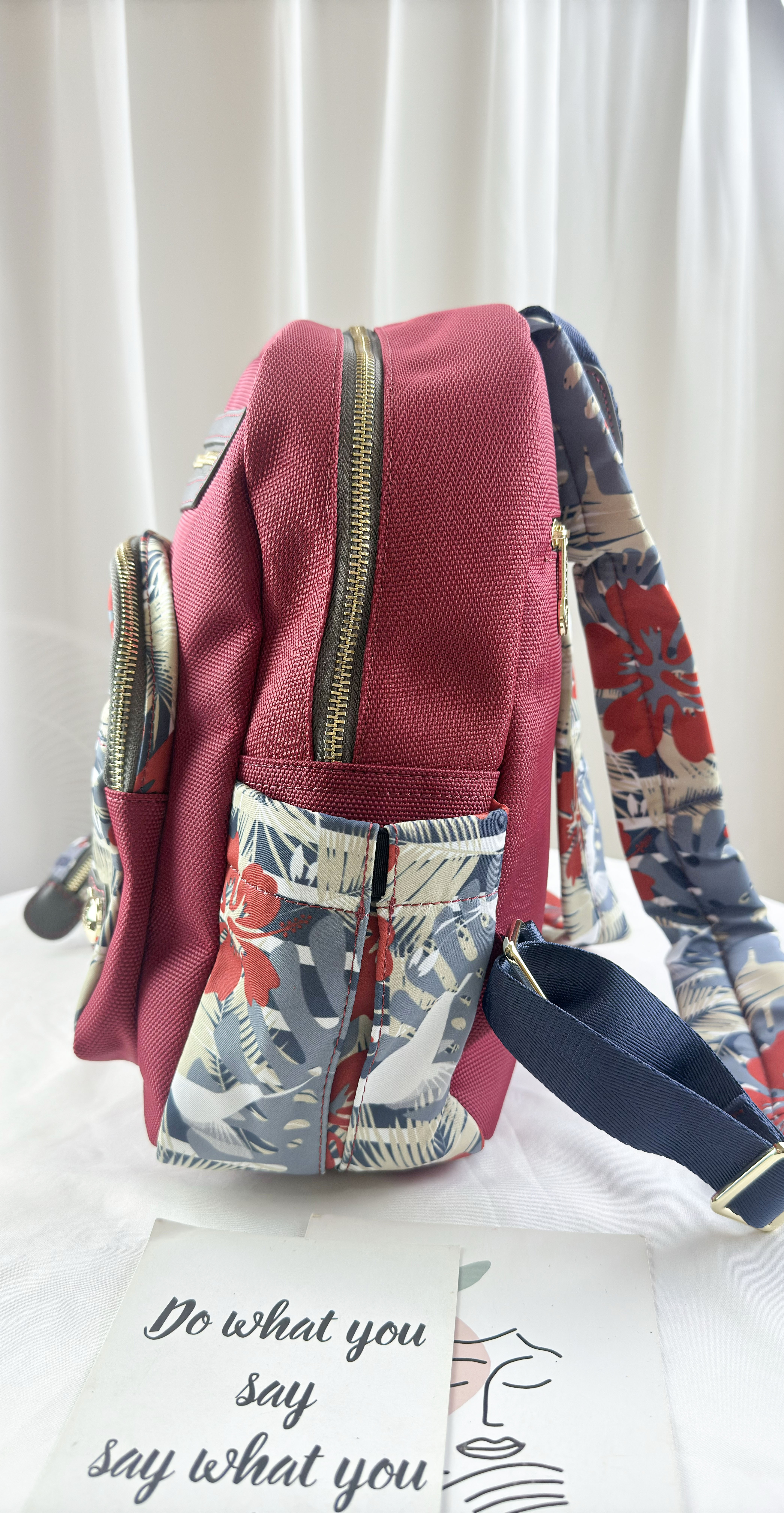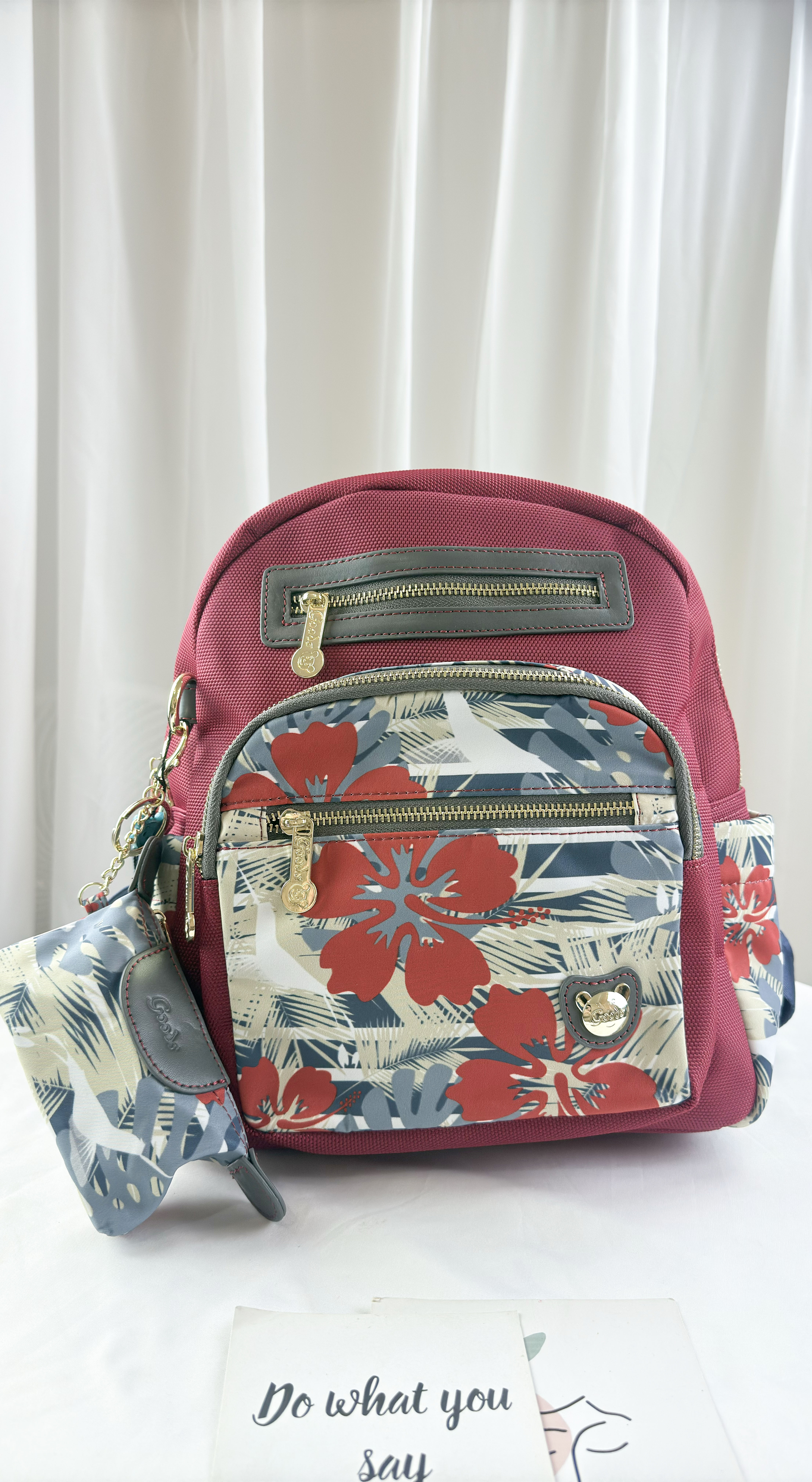 全部商品 / GOODS 紅花朵拼色防潑水後背包 附零錢包 #2867