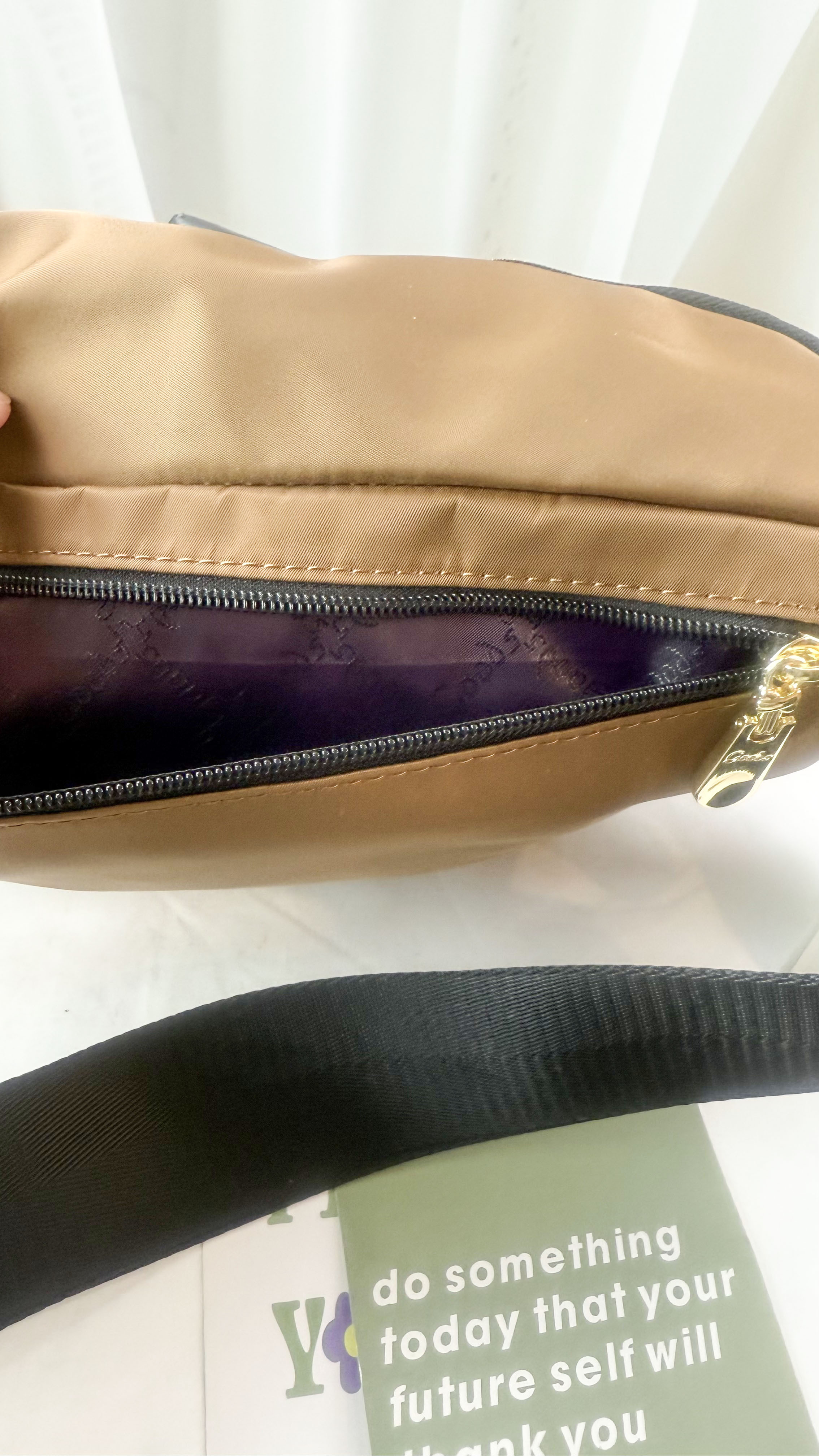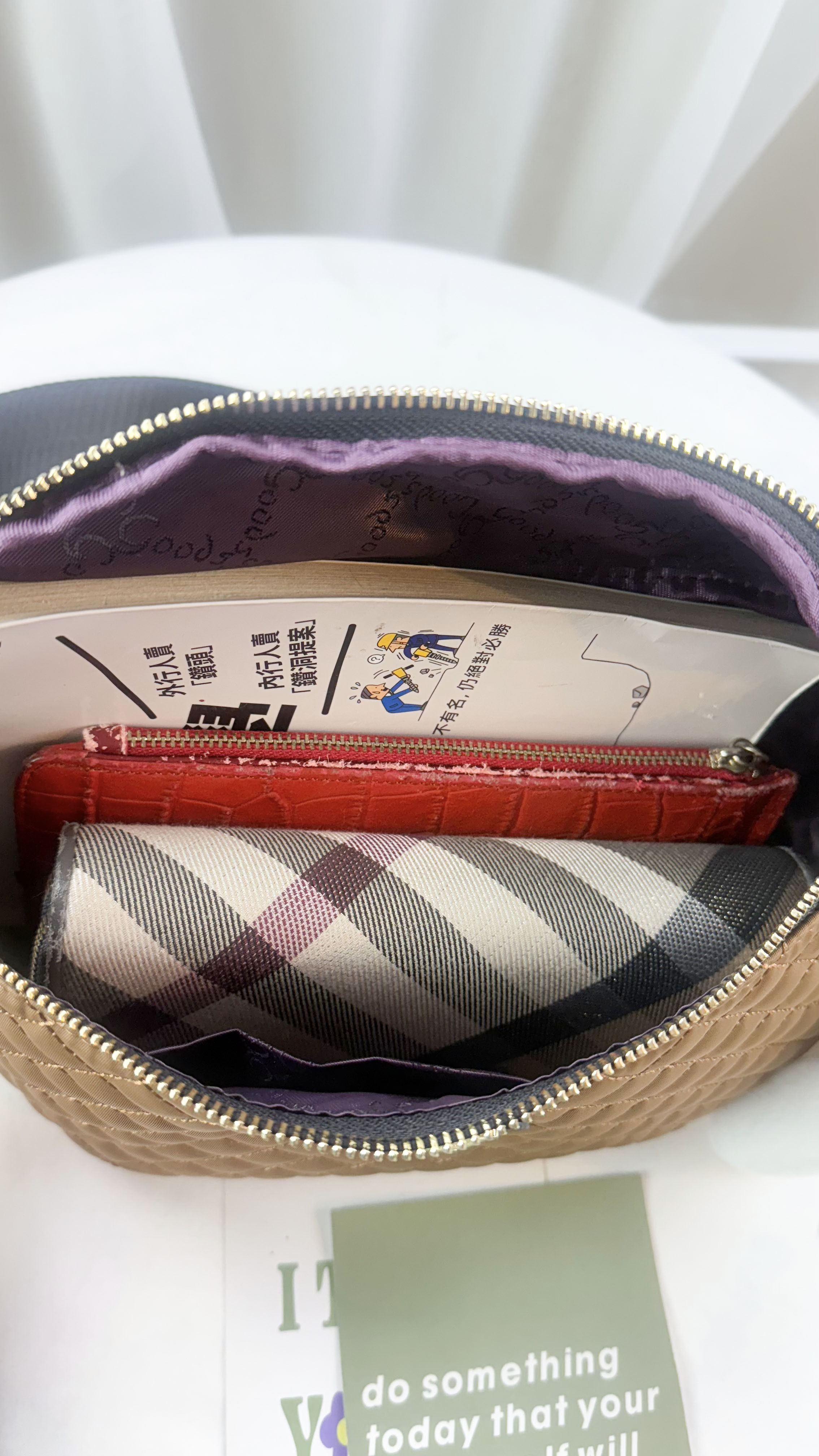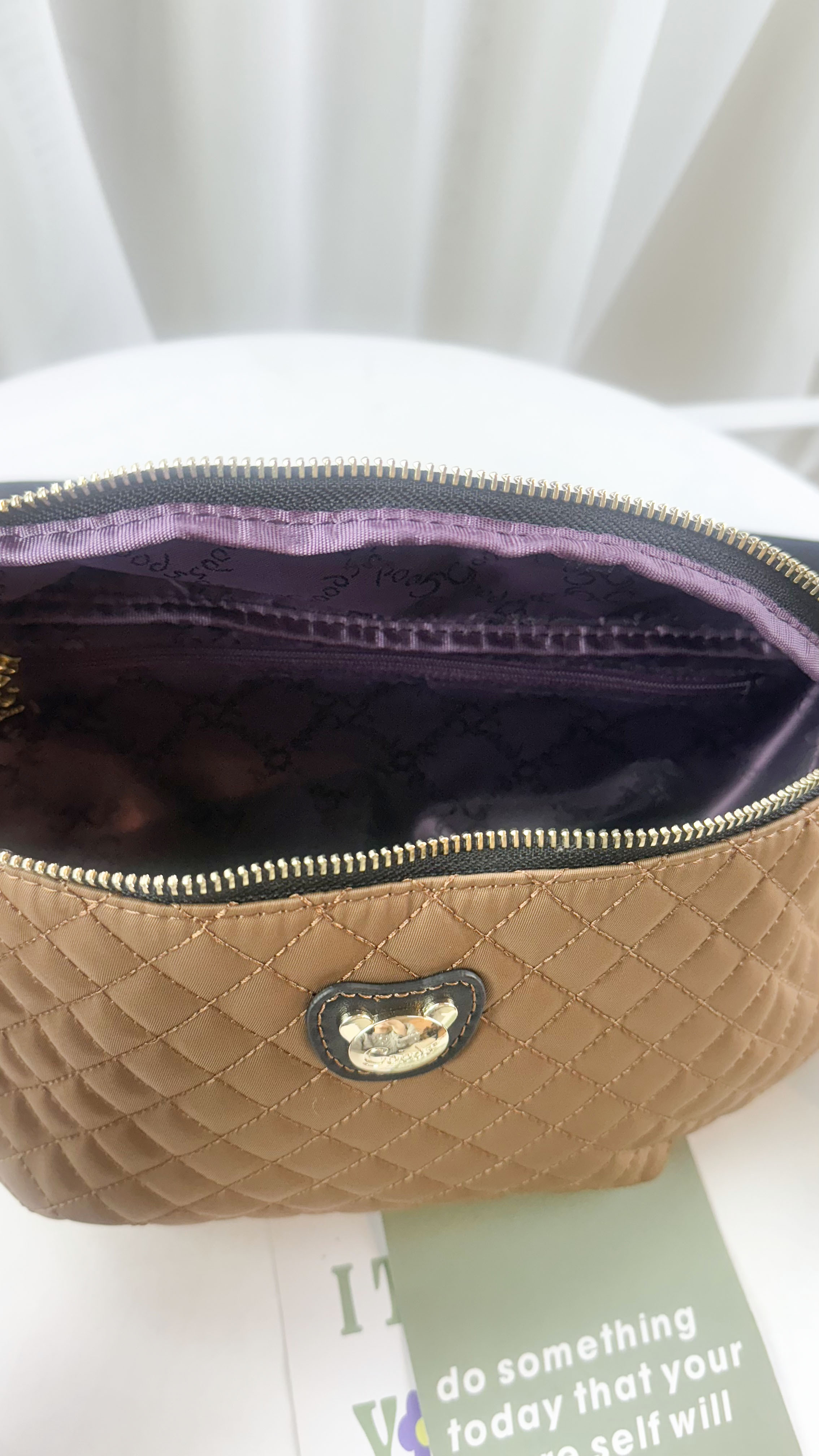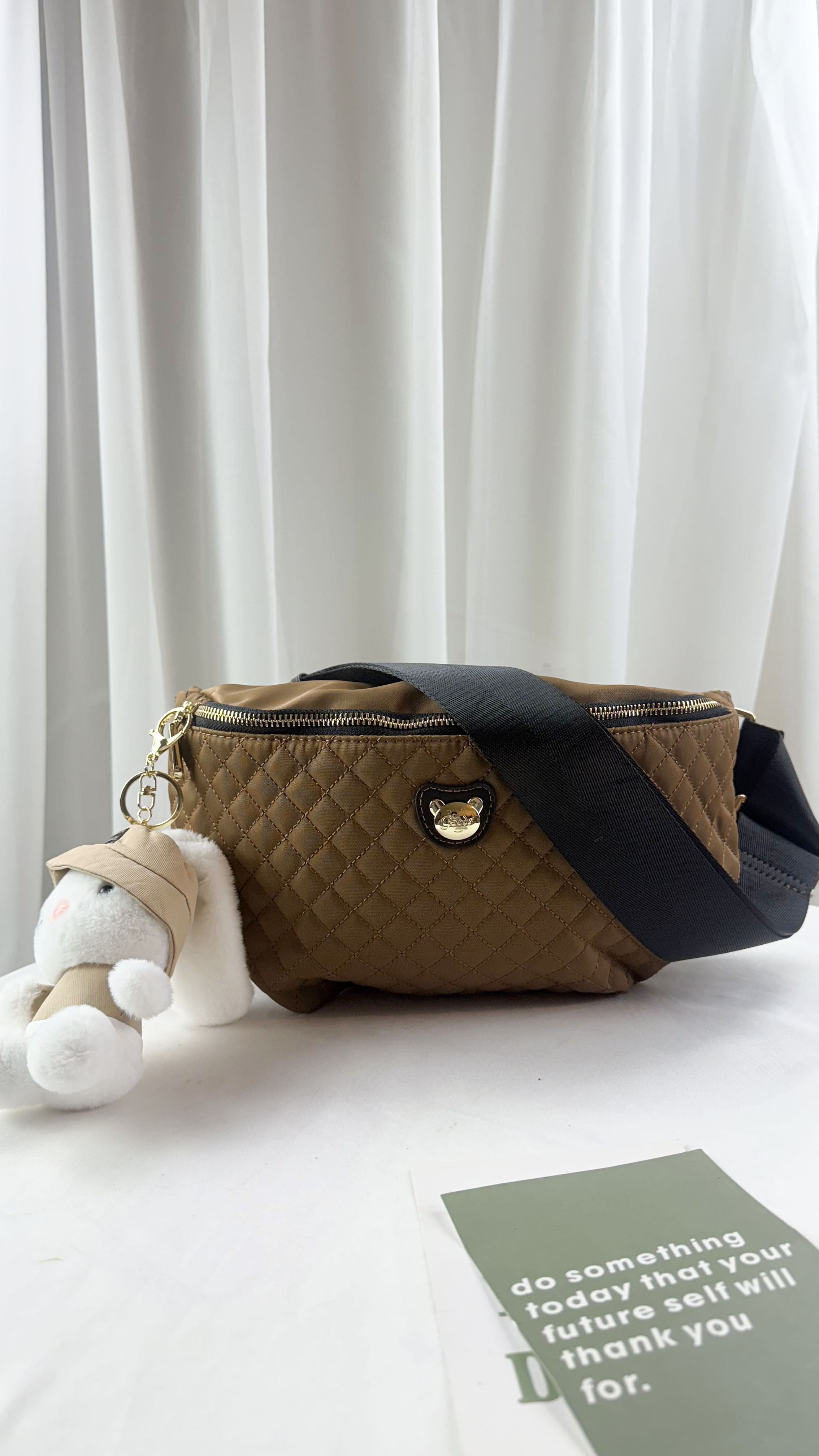 GOODS 棕色菱格紋防潑水側背包 / 腰包 附小熊吊飾 #2897