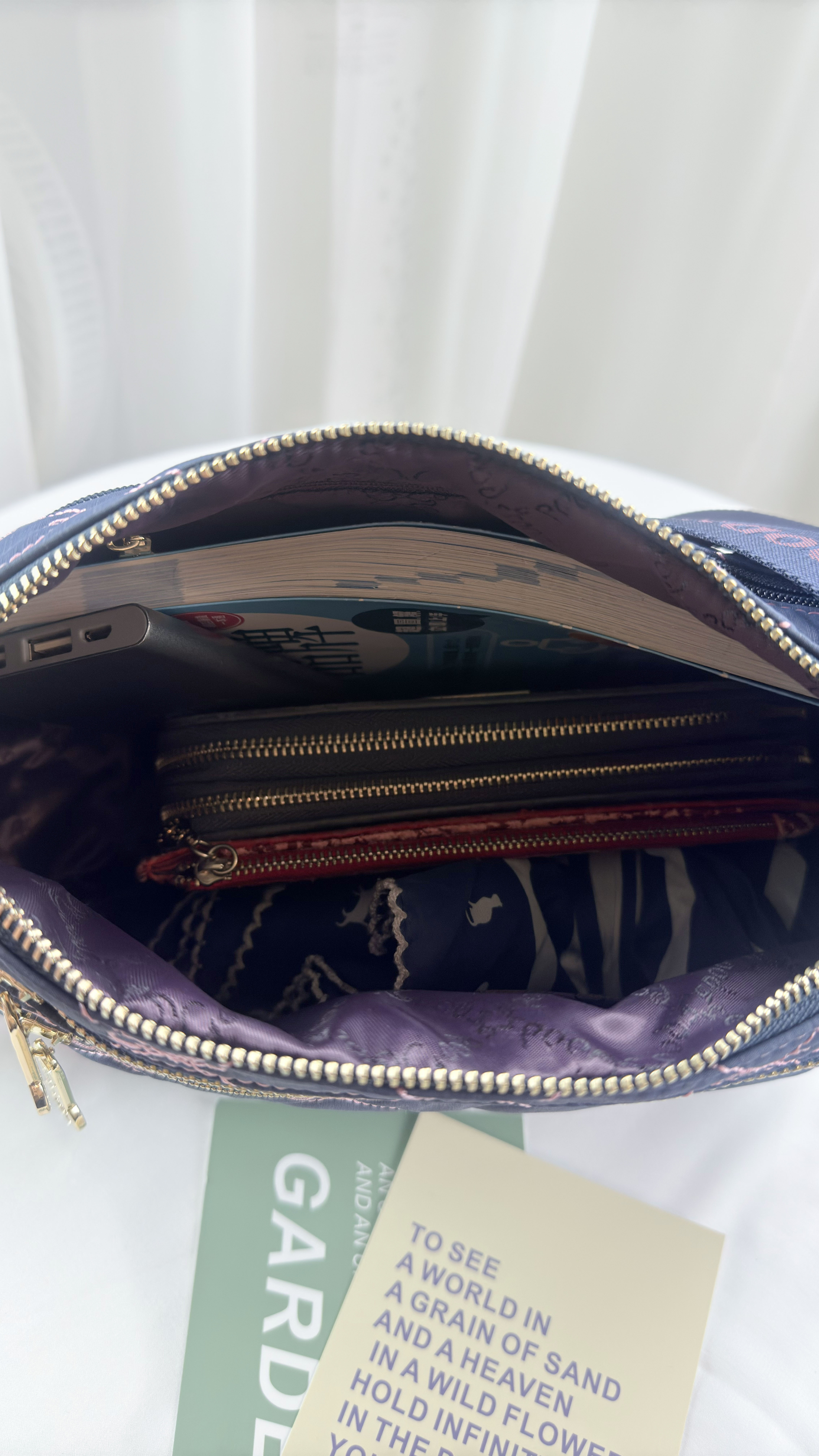 全部商品 / GOODS 牛仔藍拼接櫻花粉 防潑水側背包 附吊飾 #2899