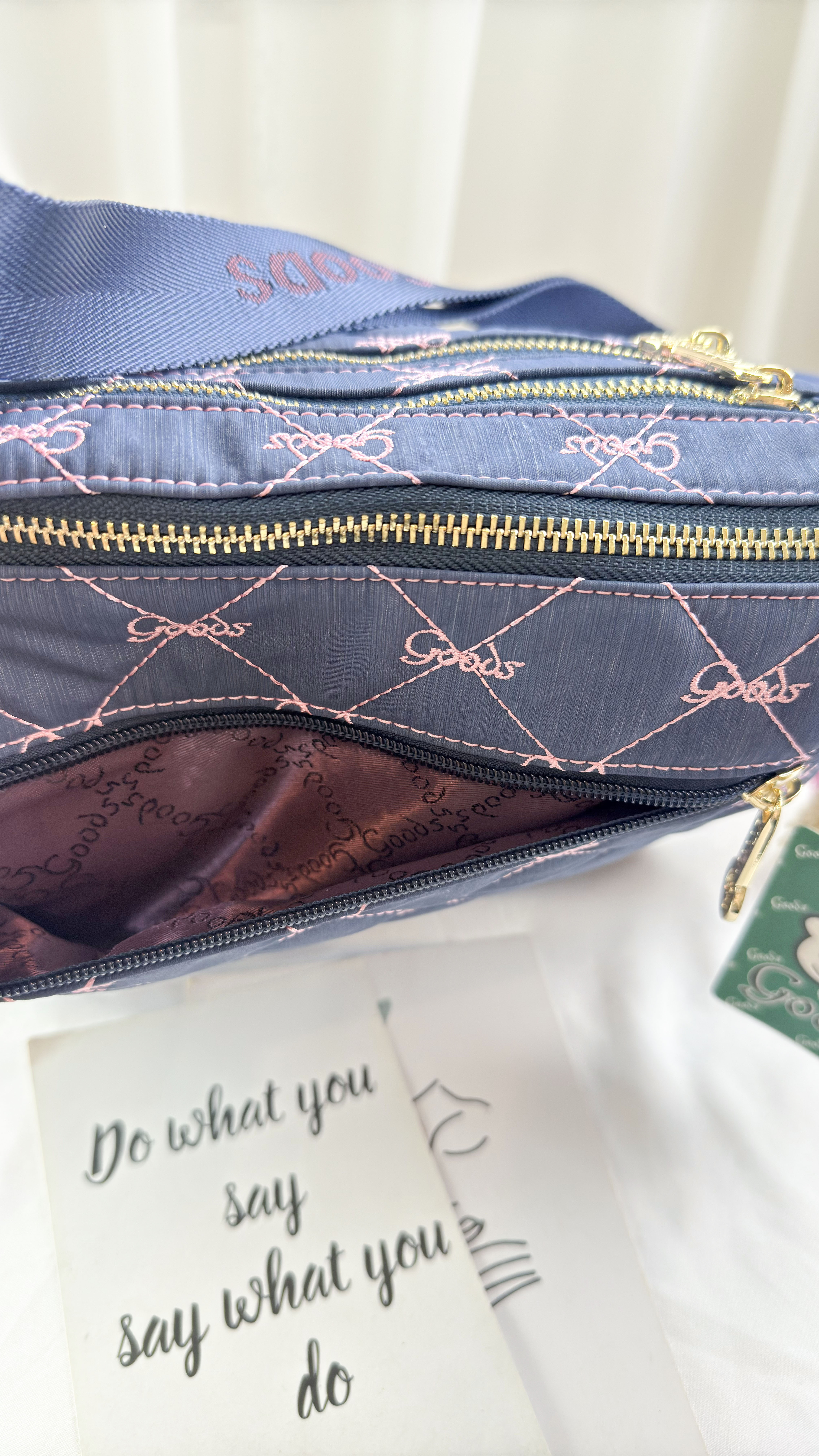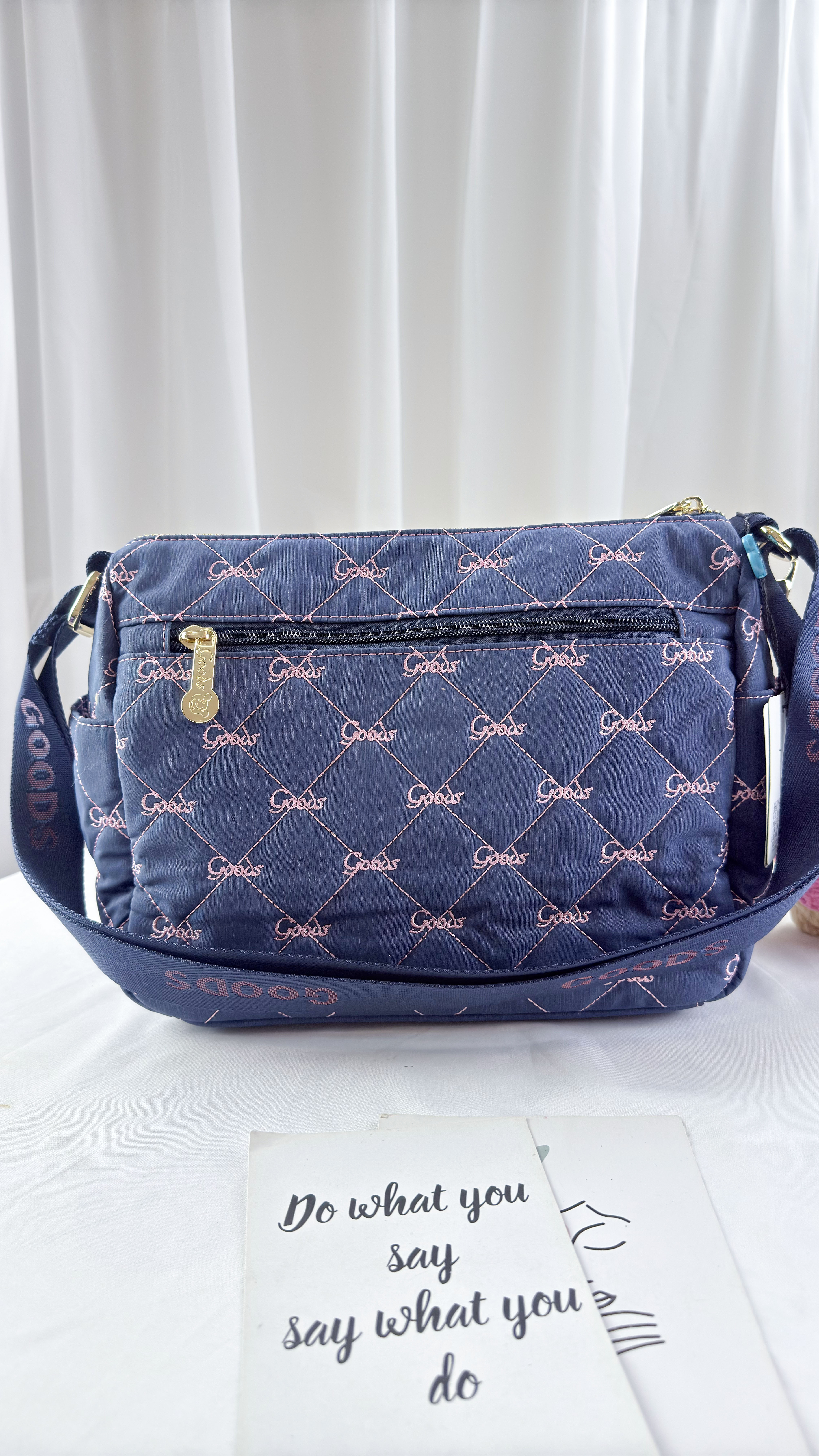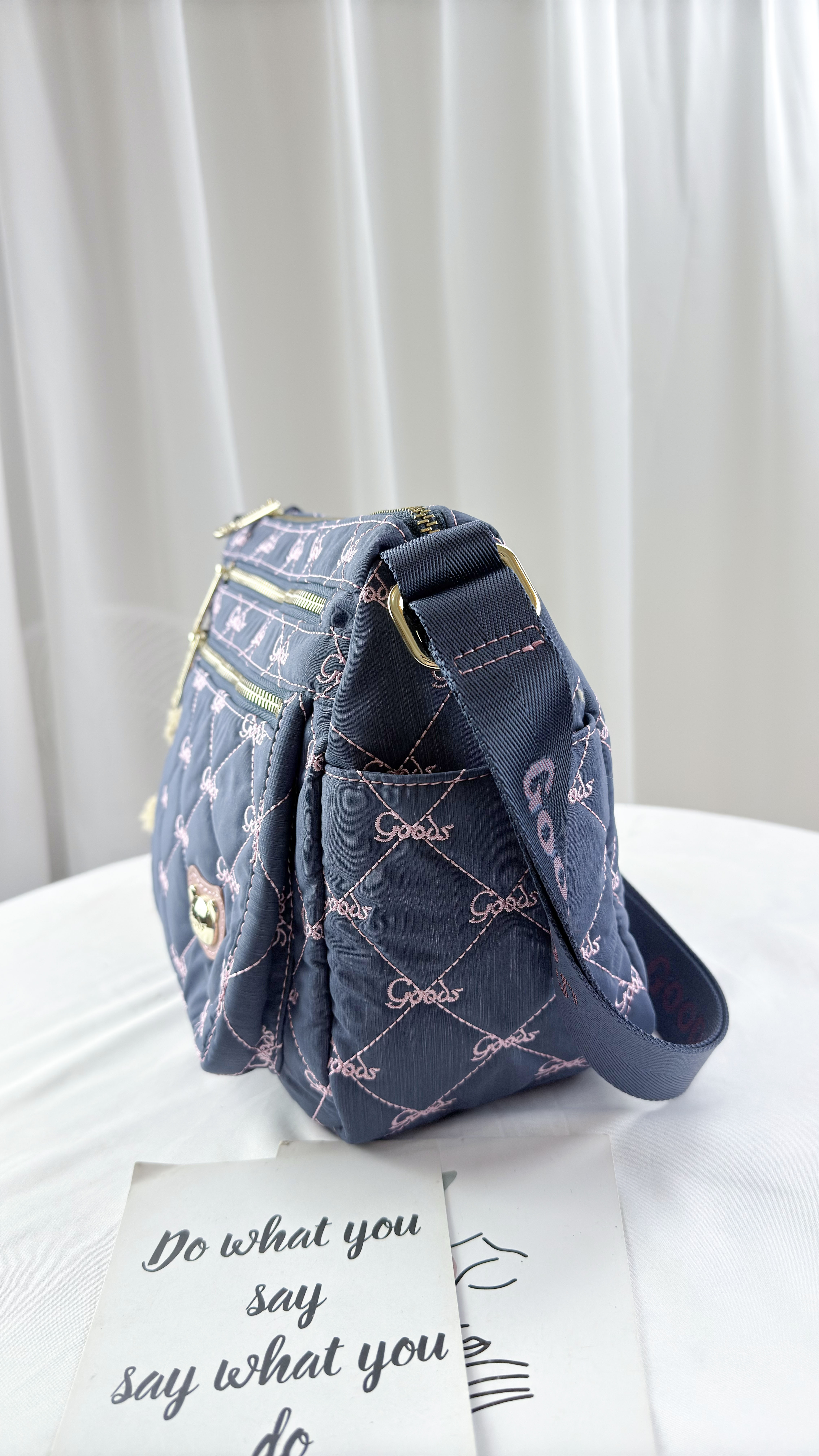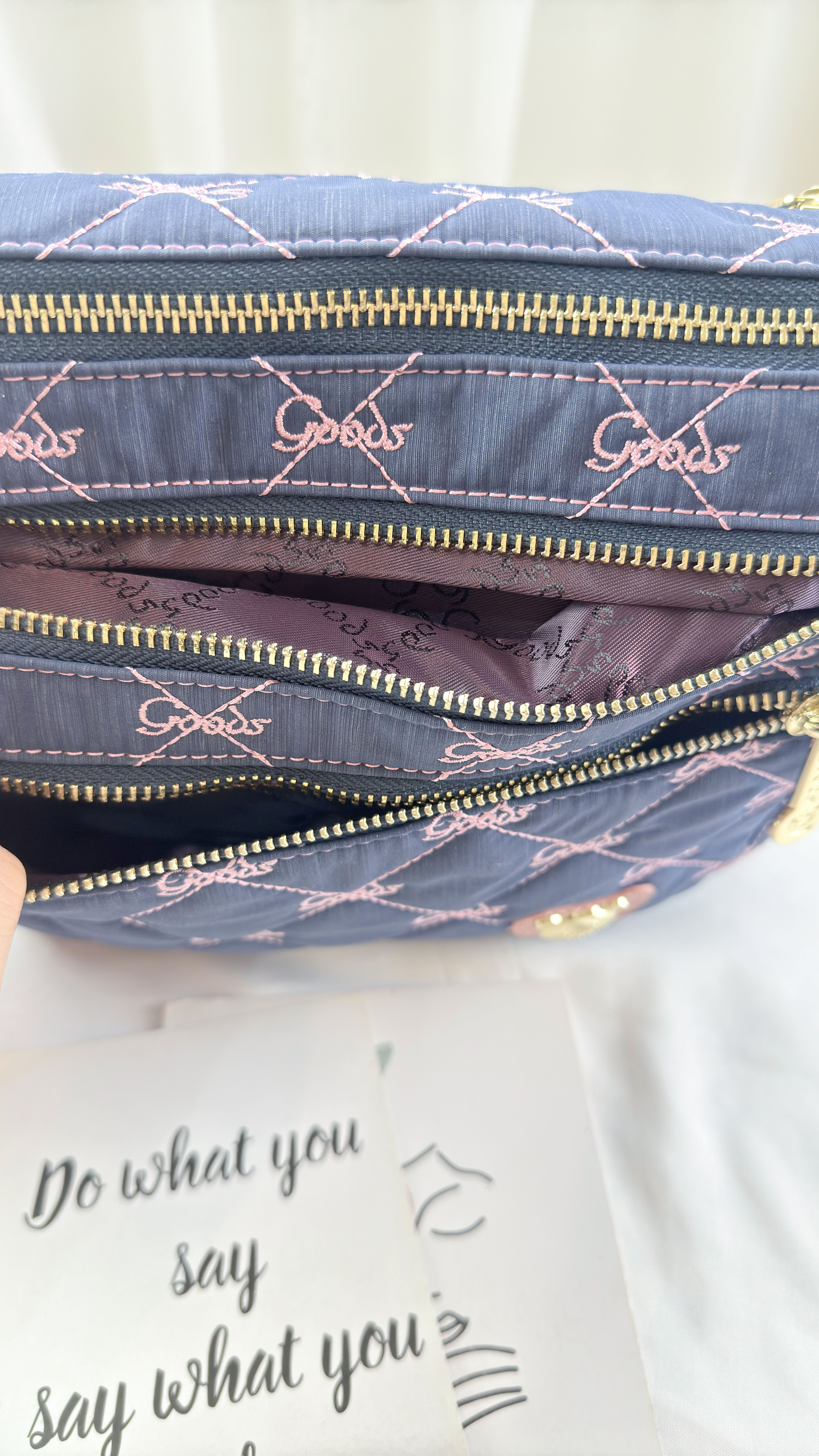 GOODS 牛仔藍拼接櫻花粉 防潑水側背包 附吊飾 #2899