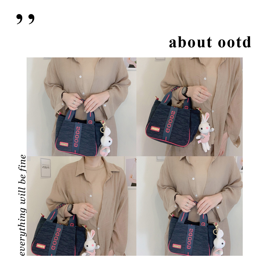 FamilyBear 藍橙織帶防潑水手提包 / 側背包 附兔兔吊飾 #29023