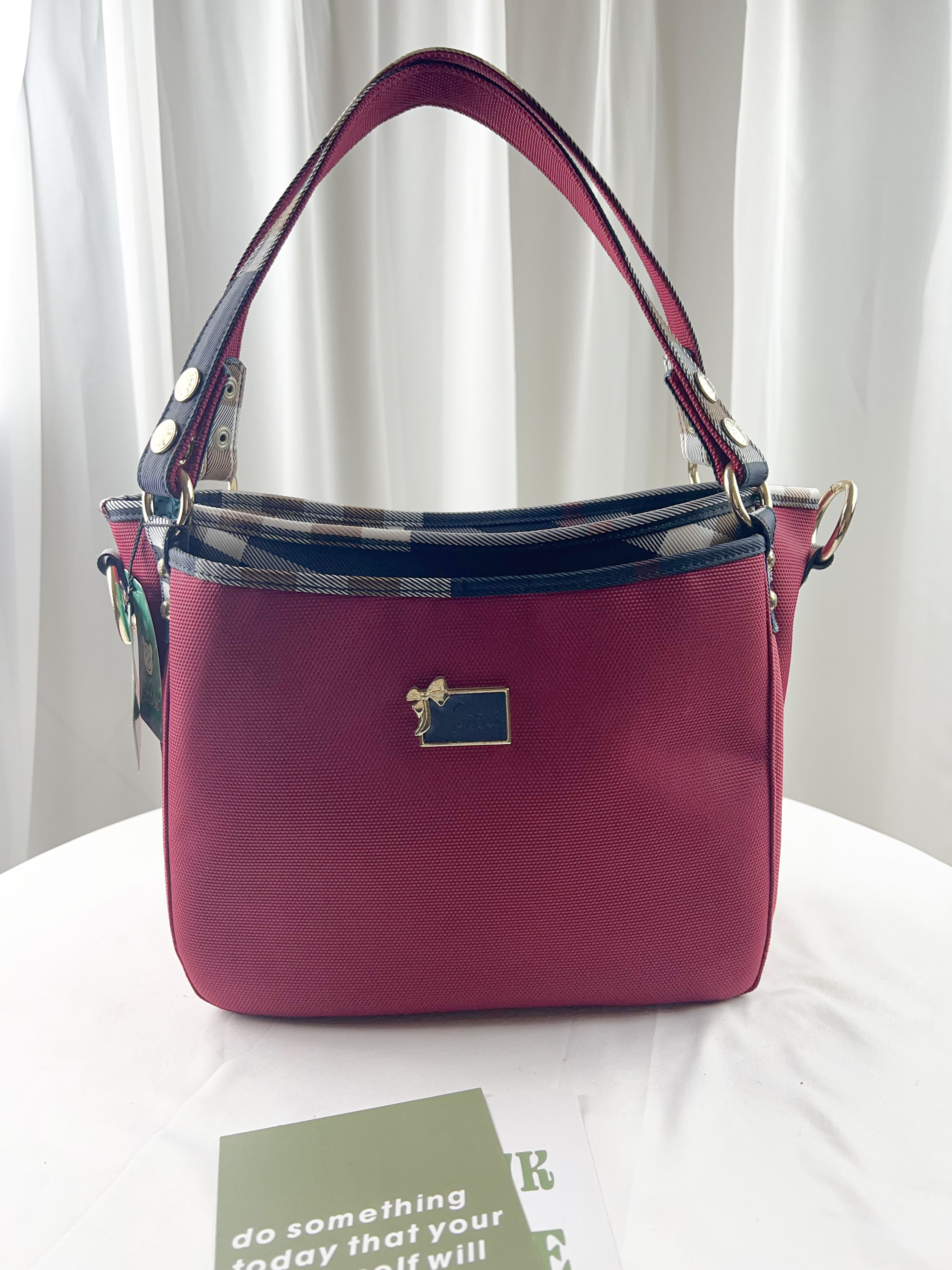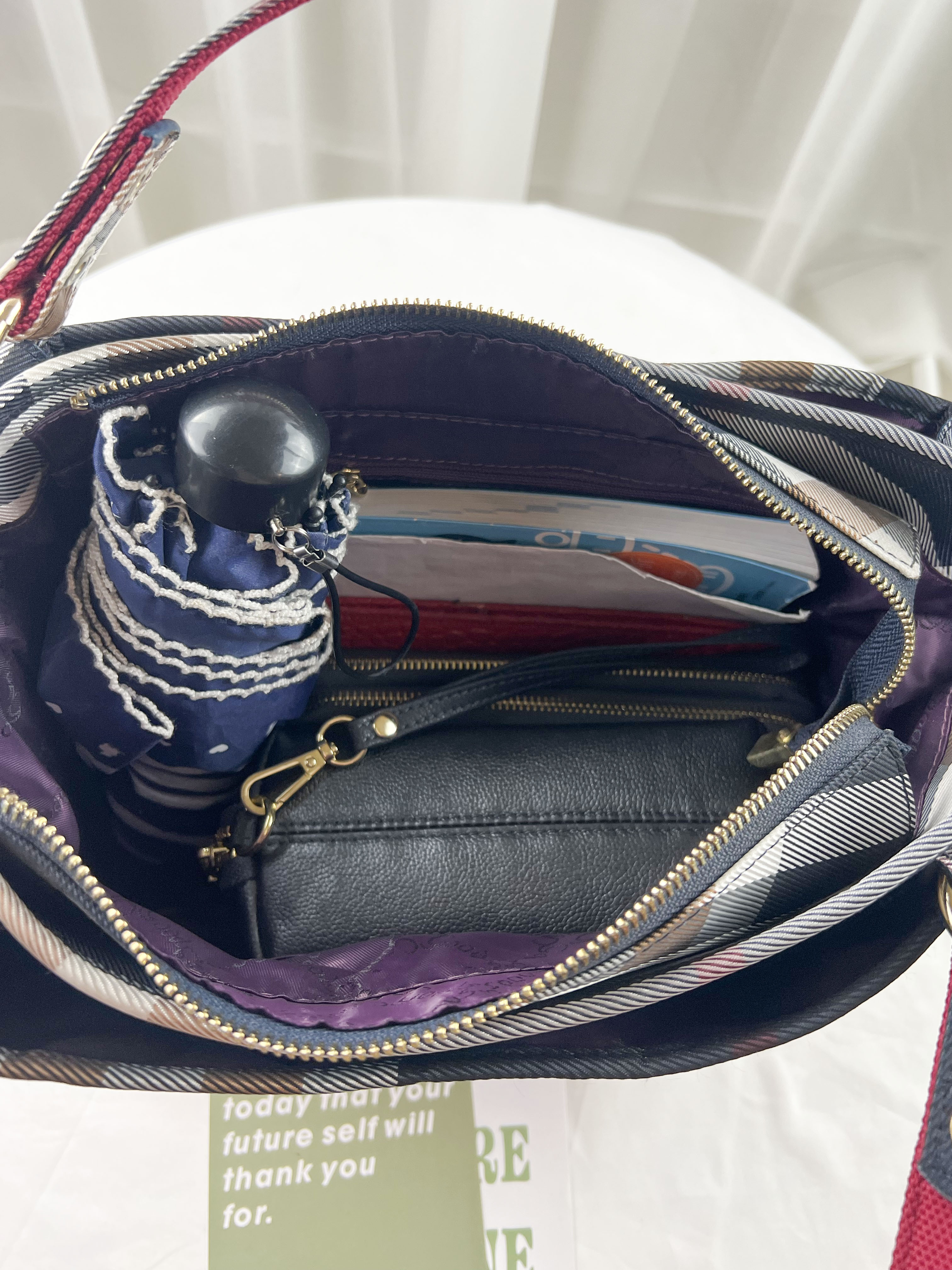 GOODS 紅格紋拼色防潑水手提包 / 側背包 #29161