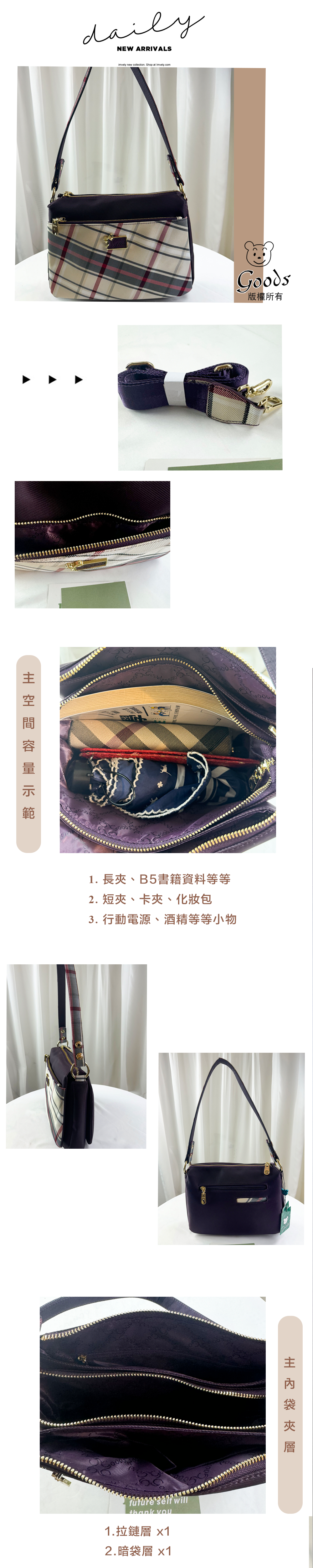 GOODS 紫格紋拼色防潑水肩背包 / 側背包 #29259