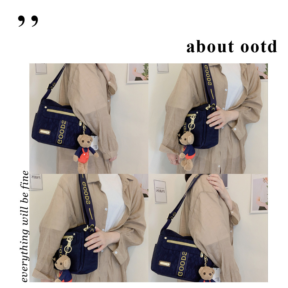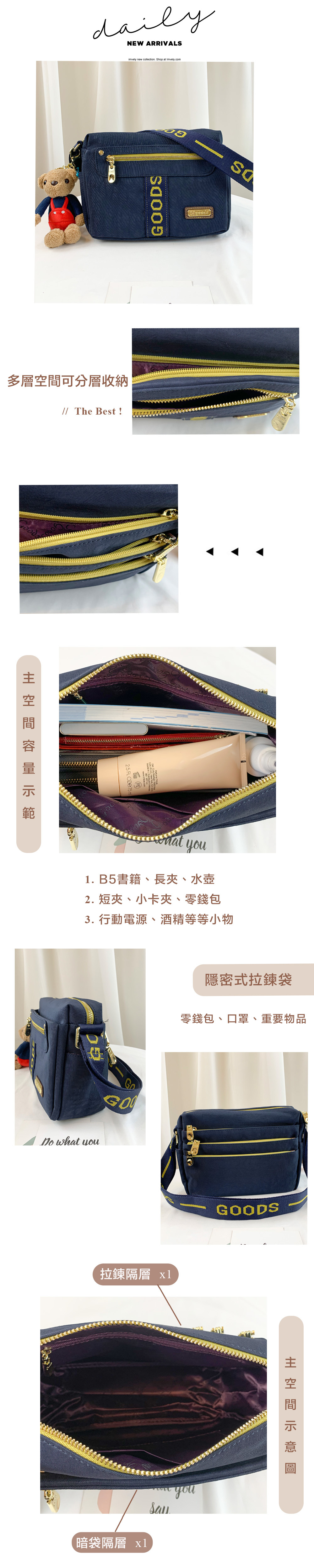 GOODS 織帶黃藍 丹寧防潑水側背包 附小熊吊飾 #29295
